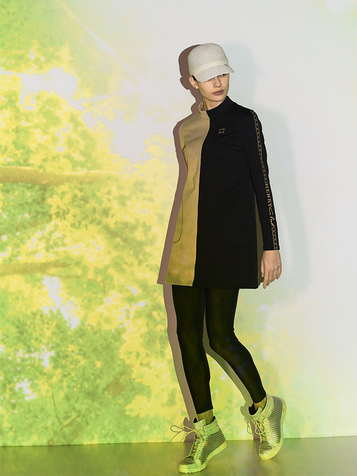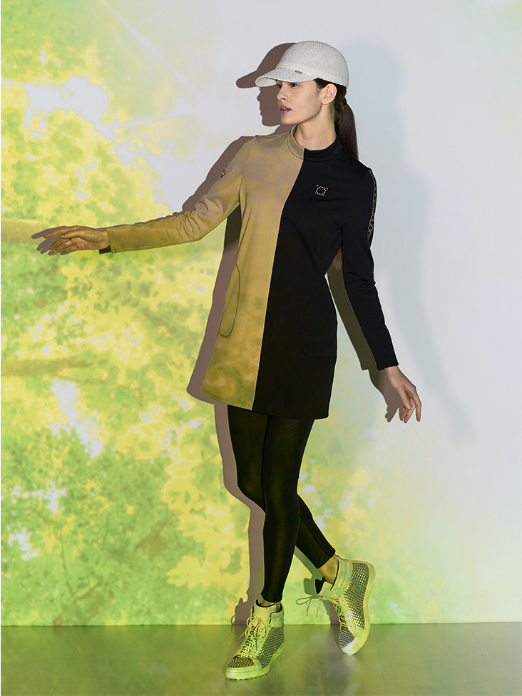 TEXBRIDという高ストレッチの機能糸を使用し、ハイゲージの編み機で特殊な組織に編み上げた素材です。動き・ハリコシ・ストレッチが特徴で仕立て映えし、体の動きを生地でサポートします。捨てるもので染めたカラーは独特な奥深い色合い、環境にも配慮したエコ素材です。レギンスは機能はそのまま、抜群な肌触りを体感してみて下さい。ゴルフシーンはもちろん、フィットネス・ヨガ等々のスポーツシーンでも活躍します。