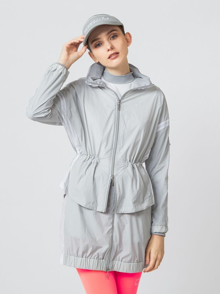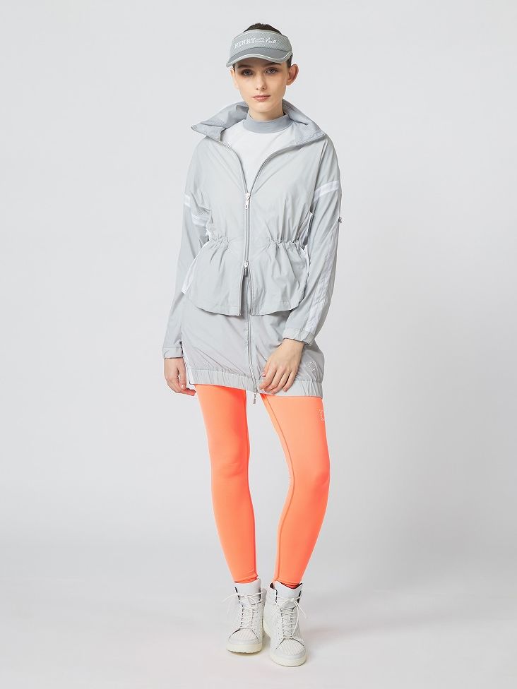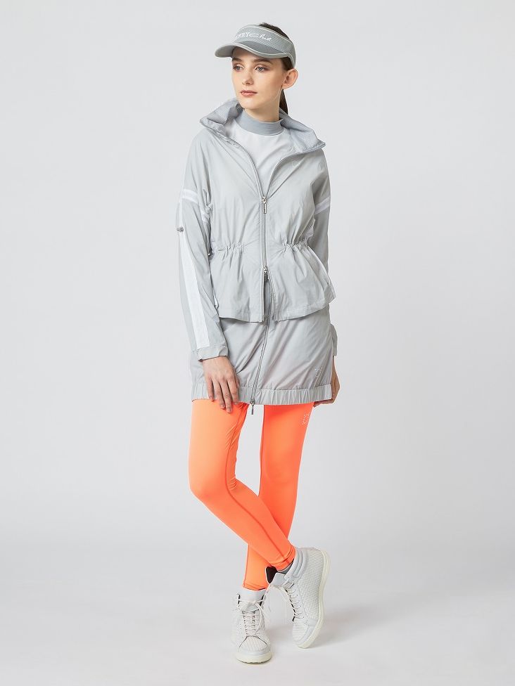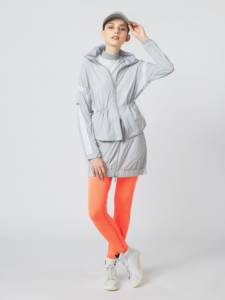 エアリーでしなやか、ストレッチと撥水機能を兼ね備えたブルゾンとスカートのセットアップスタイル。多機能のレギンスをアクセントに取り入れてよりスタイリッシュな印象に。
