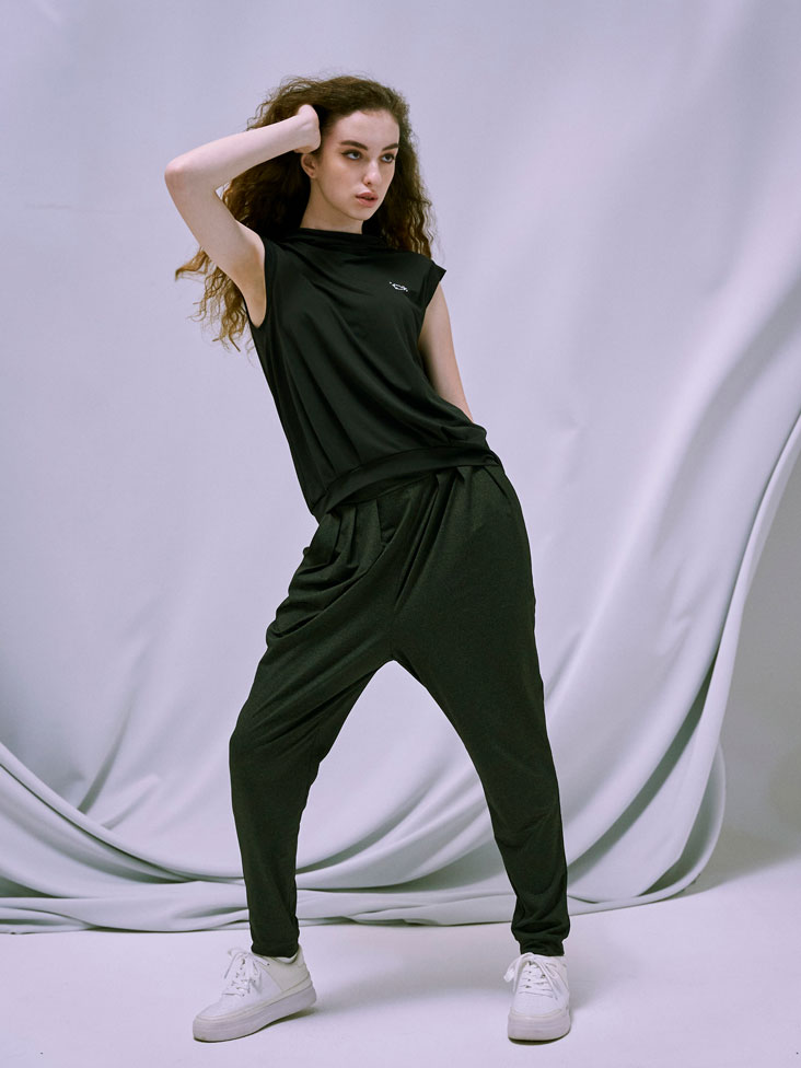 柔らかく、優しい肌当たりが気持ち良い素材で作られたセットアップ。動きやすくストレスフリーな着心地のアイテム。ゆったりしたシルエットながら、すっきりシャープな印象で着ていただけます。