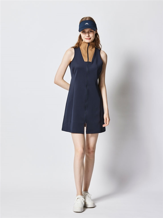 まだ暑さが残る秋にぴったりのワンピース。首元がニットなので、秋らしく夏のノースリーブとは差をつけることができます。また、ジップで気温調整ができるのもポイント。寒さが不安な方は薄手のブルゾンを羽織るのもおすすめです。