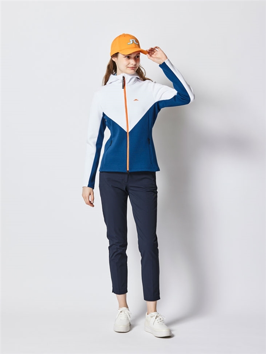 オレンジであわせたスポーティーコーデ。フードつきのブルゾンは、通気性を備えながらも暖かさを逃さない秋に持っておきたいアイテム。中にはライトブルーとオレンジの半袖ポロ。爽やかなカラーリングでネイビーのボトムスとは相性ぴったし。キャップもオレンジで寒さを感じさせない明るいコーデになっています。