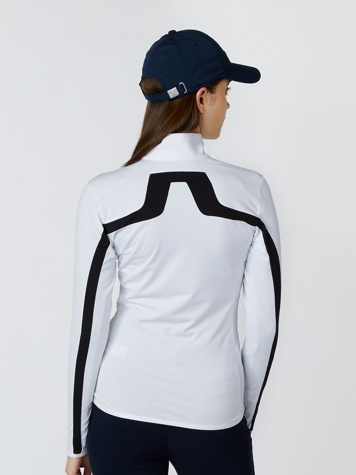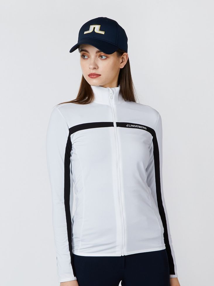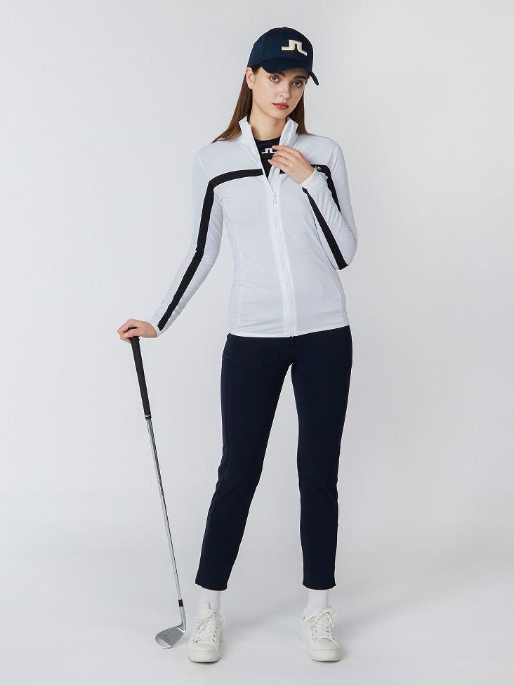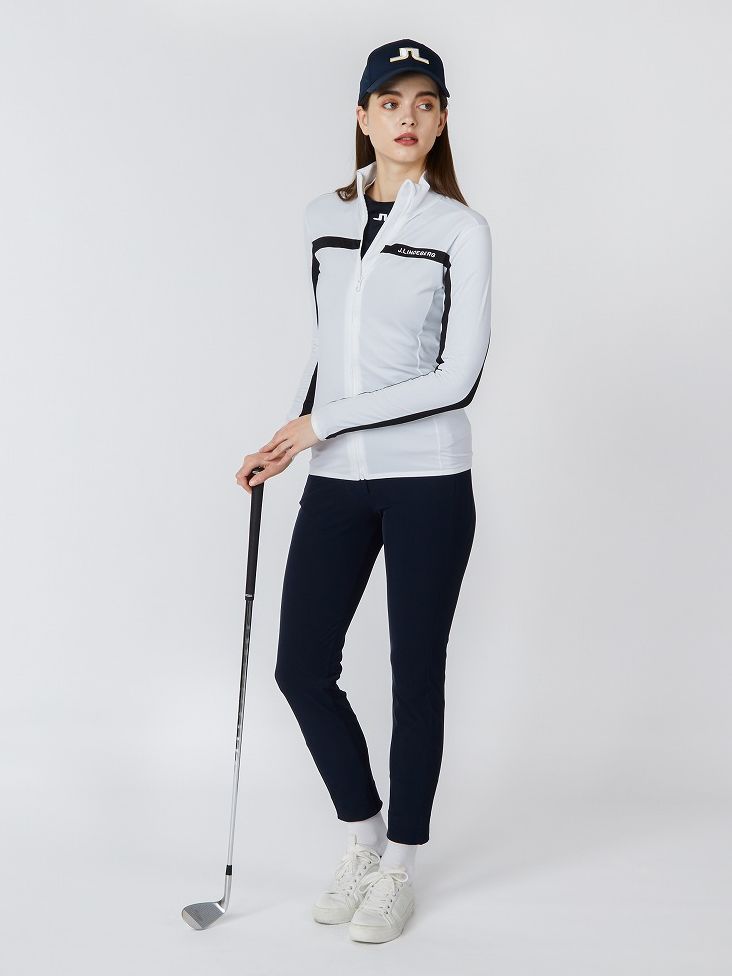 ハイネック7コンプレッションシャツにミドラーを合わせ首元をスッキリとさせることで余計なストレスを感じさせないスポーツスタイル。背中のバックブリッジが特徴的でゴルフ場でも存在感大。