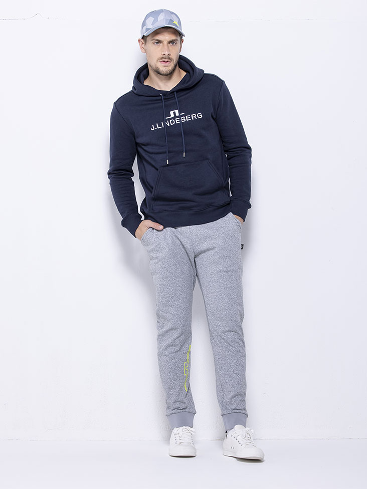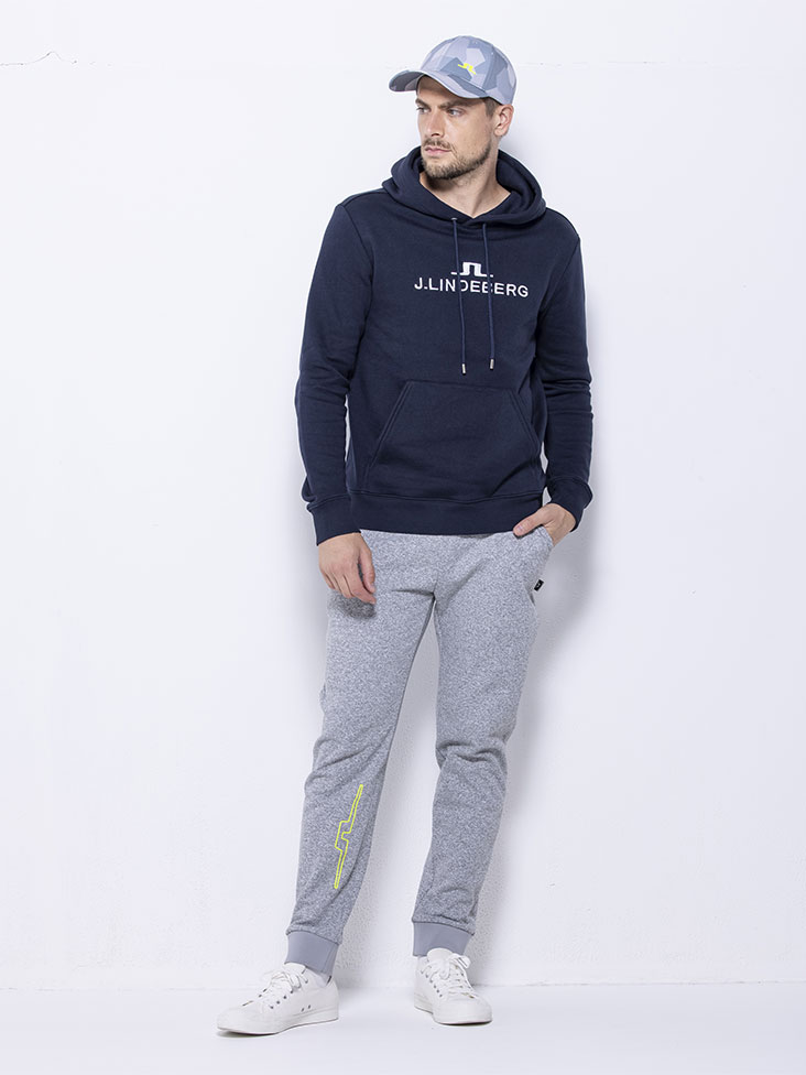 ゴルフの練習やアクティビティに最適なスポーティなスタイリング。ロゴパーカーにジョガーパンツを合わせた、シンプルながらも洗練されたスポーティルック。パーカーはアイコニックなロゴに裏毛素材を使ったシンプルなアイテム。ジョガーパンツは30分の雨に耐えられる超撥水機能を持った裏起毛の素材を使用。