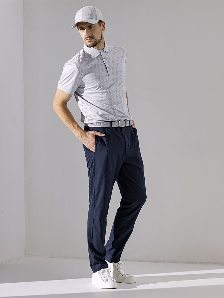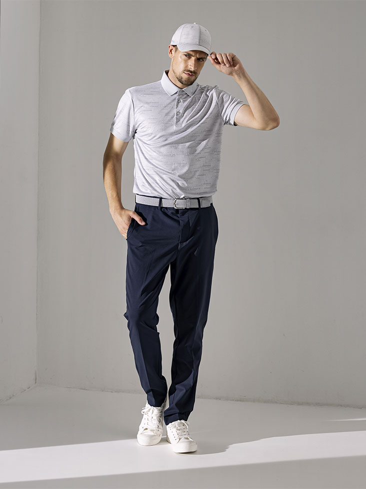 まだまだ暑い秋の立ち上がりに最適な半袖ポロを使ったスタイリング。Jリンドバーグ不動の人気のバックブリッジにJLロゴをプリントしたポロシャツ。パンツはマイクロハイストレッチにサイドラインは同色のハイベントを使用して、通気性を持たせたことにより暑い時期でも快適に着られるアイテム。