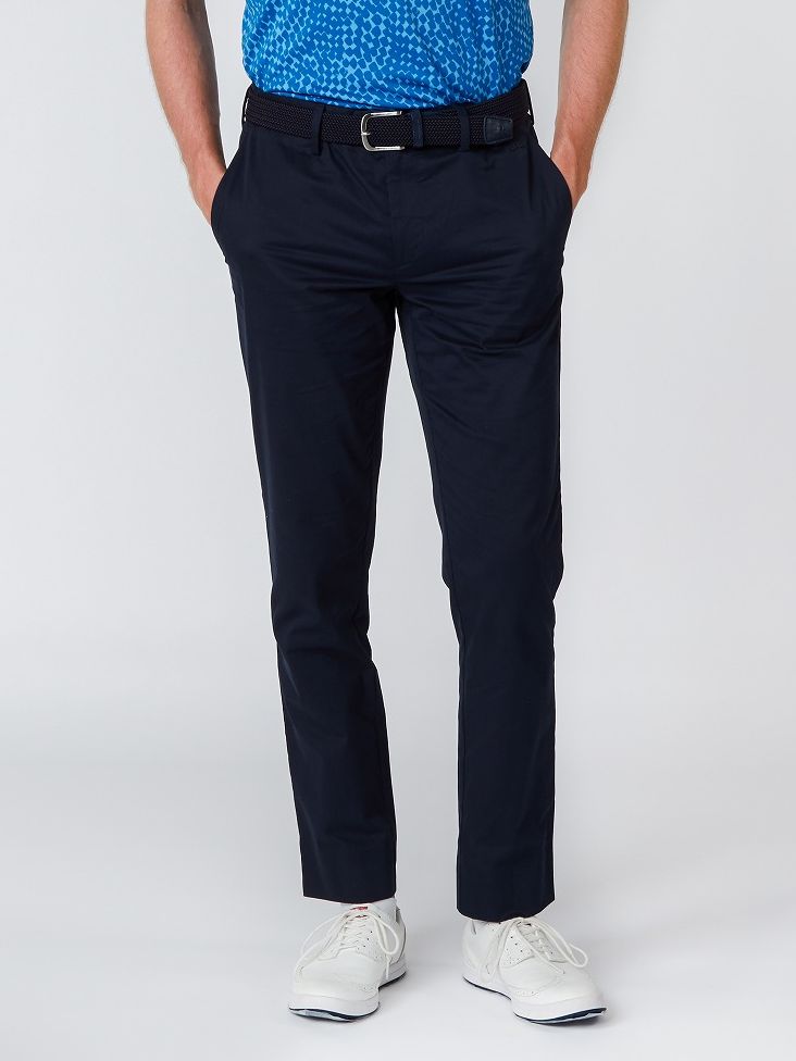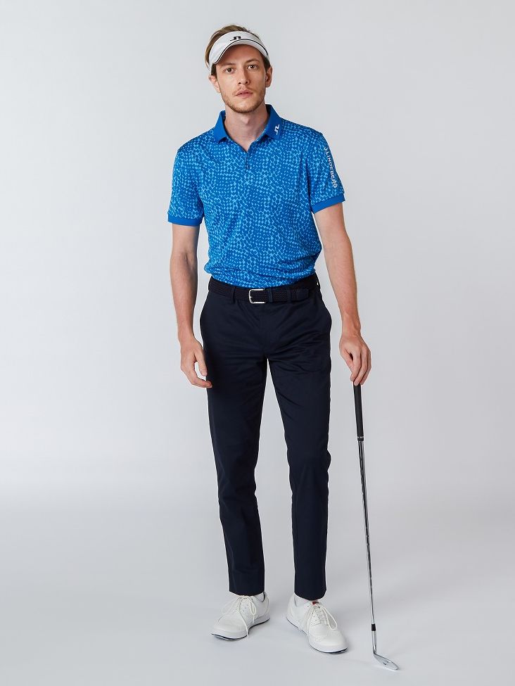 シーズン柄であるチェッカー柄を細身シルエットのPTで合わせた晩夏向けのスタイリング。速乾性とストレッチに優れプレー時のパフォーマンスもしっかりとサポート。
