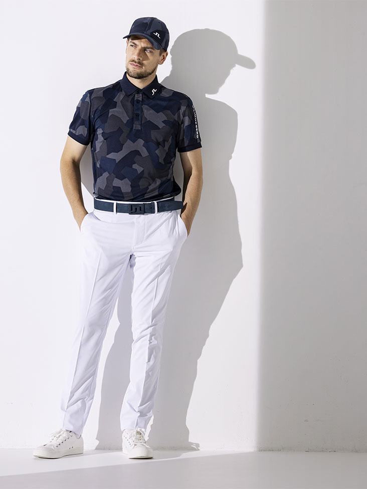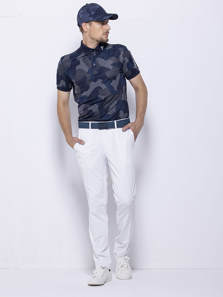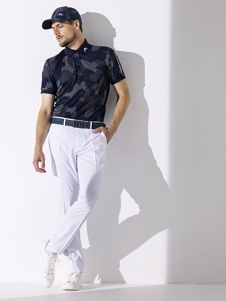 ポロシャツは定番の袖ロゴデザインに好評の柄を使用。同色系を4色を組み合わせて組んだ柄はインパクトがありつつも、大人でも着られる丁度よい柄。パンツは毎シーズン定番で企画しているエロフゴルフパンツを使用し、シンプルかつスタイリッシュな見た目。
