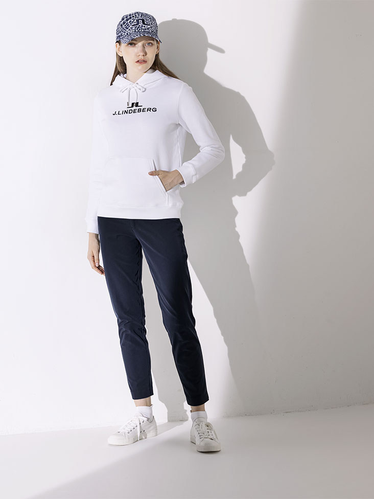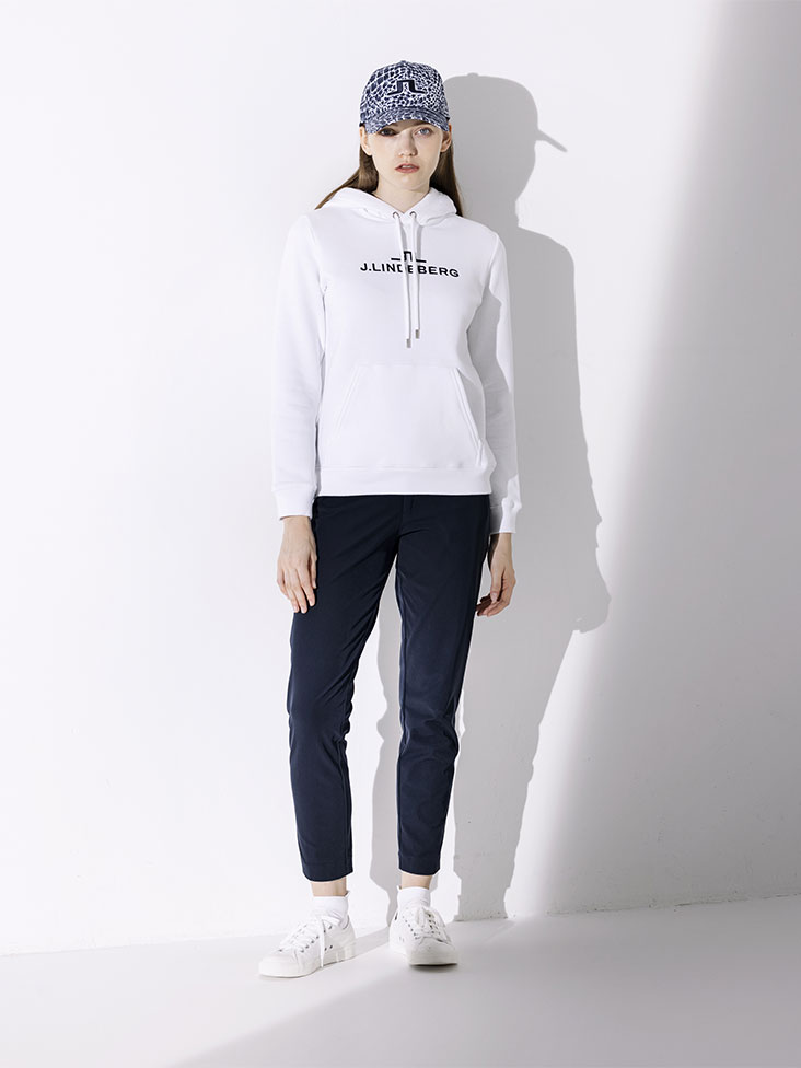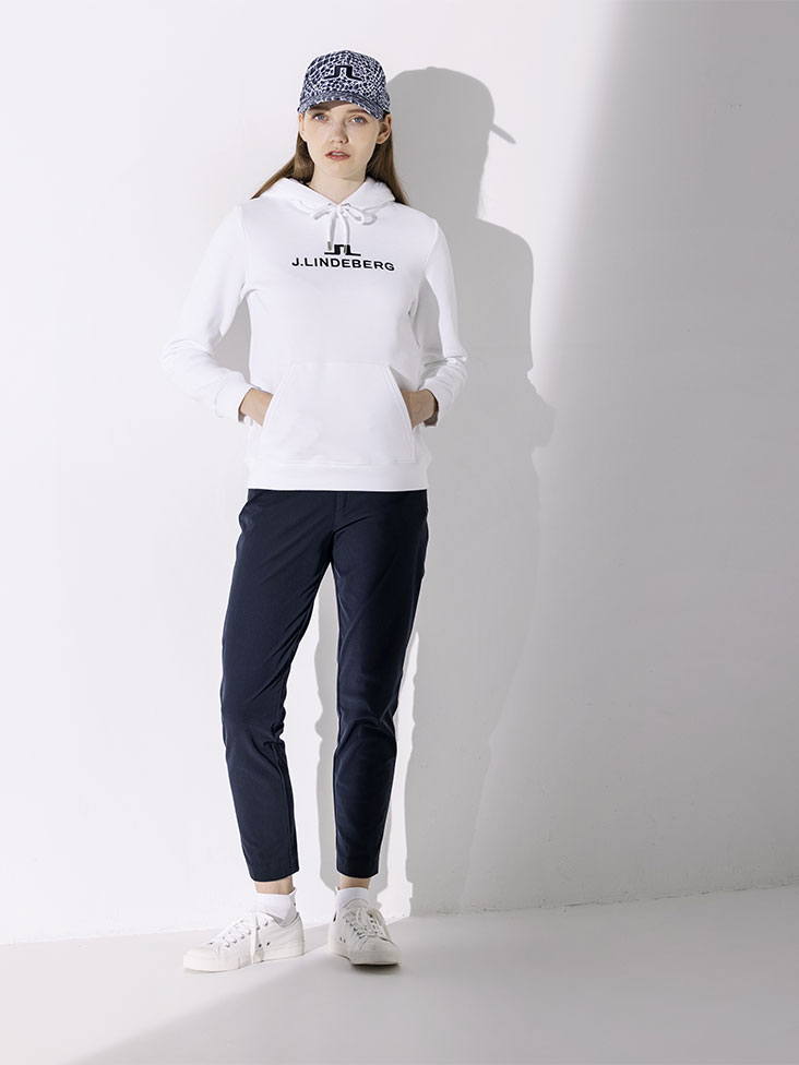 ゴルフの練習やアクティビティに最適なスポーティなスタイリング。ロゴパーカーとタイトなボトムスでシンプルながらも洗練されたスポーティルック。パンツはストレッチの効いた5ポケットタイプのベーシックなスリムフィットパンツ。