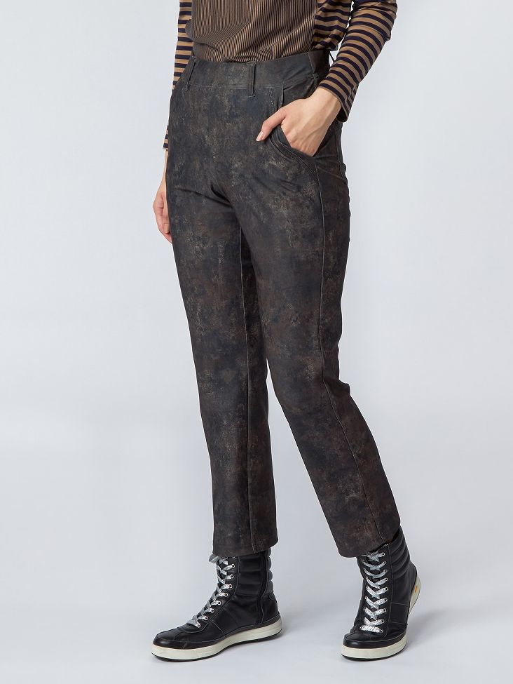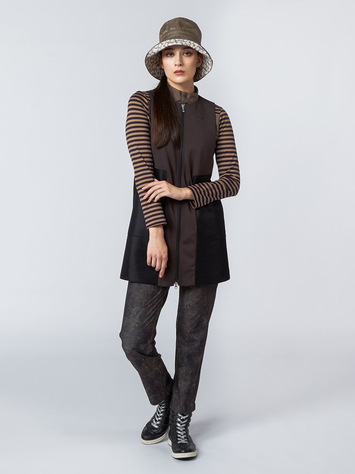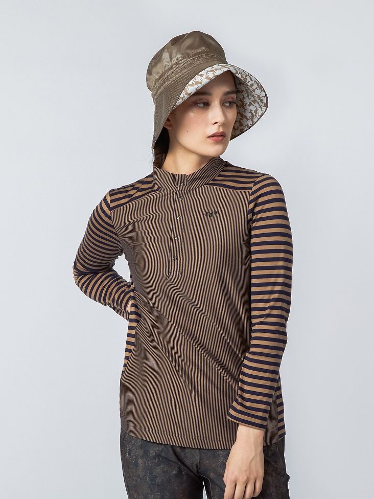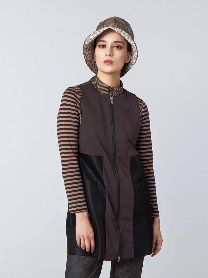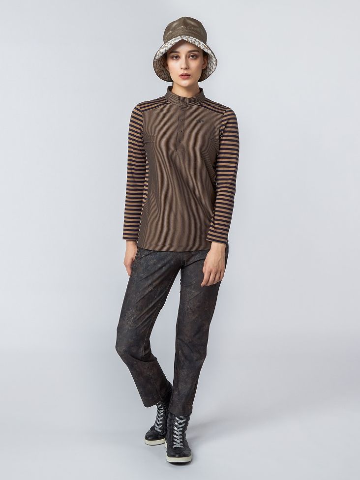 気温調整だけでないファッションとしてのレイヤードスタイル。ムニタルプならではの同系色で合わすことによって、柄MIXも挑戦しやすく。