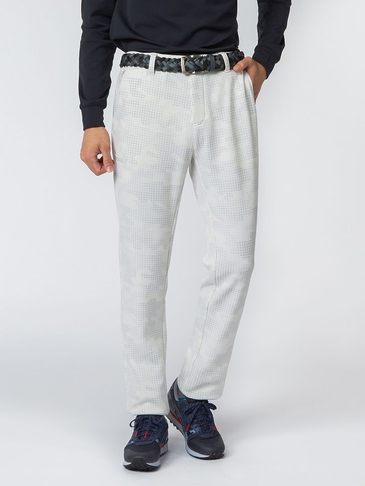 ローゲージのネップニットにハイネックインナーを合わせたコーディネイト。インナーは防風機能を備えた裏起毛素材なので真冬のラウンドにも最適。パンツもストレッチ性に優れ、軽量で保温性に優れた高機能アイテム。カジュアルながら機能性をしっかりと備えたスタイリング。