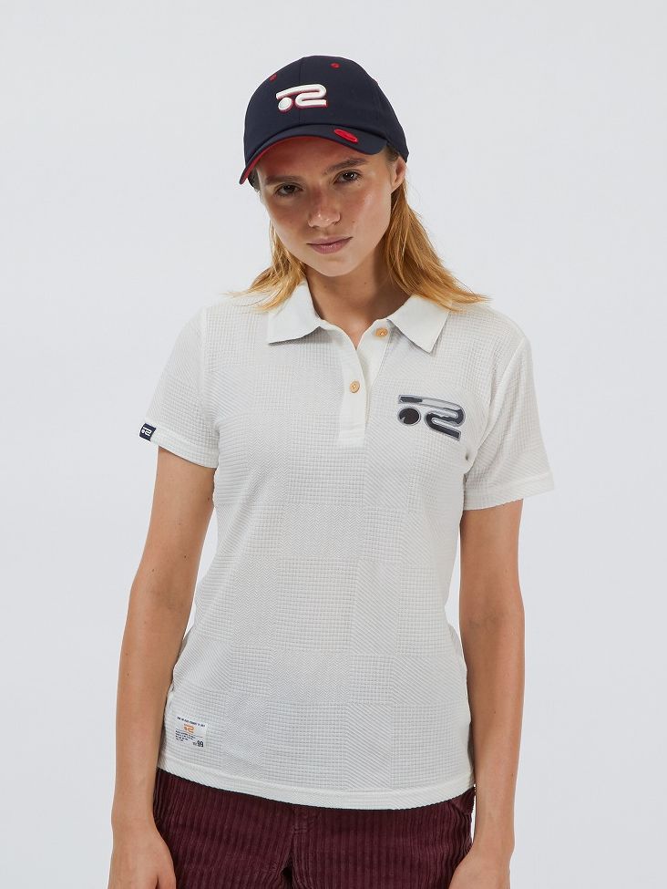 近年エコの観点からも注目されているホールガーメントニットをメインにスタイリング。フレアの入ったスカートを合わせることでより女性らしいスタイルに。ポロ衿を立たせた際に見える迷彩柄もスタイリングのポイント。