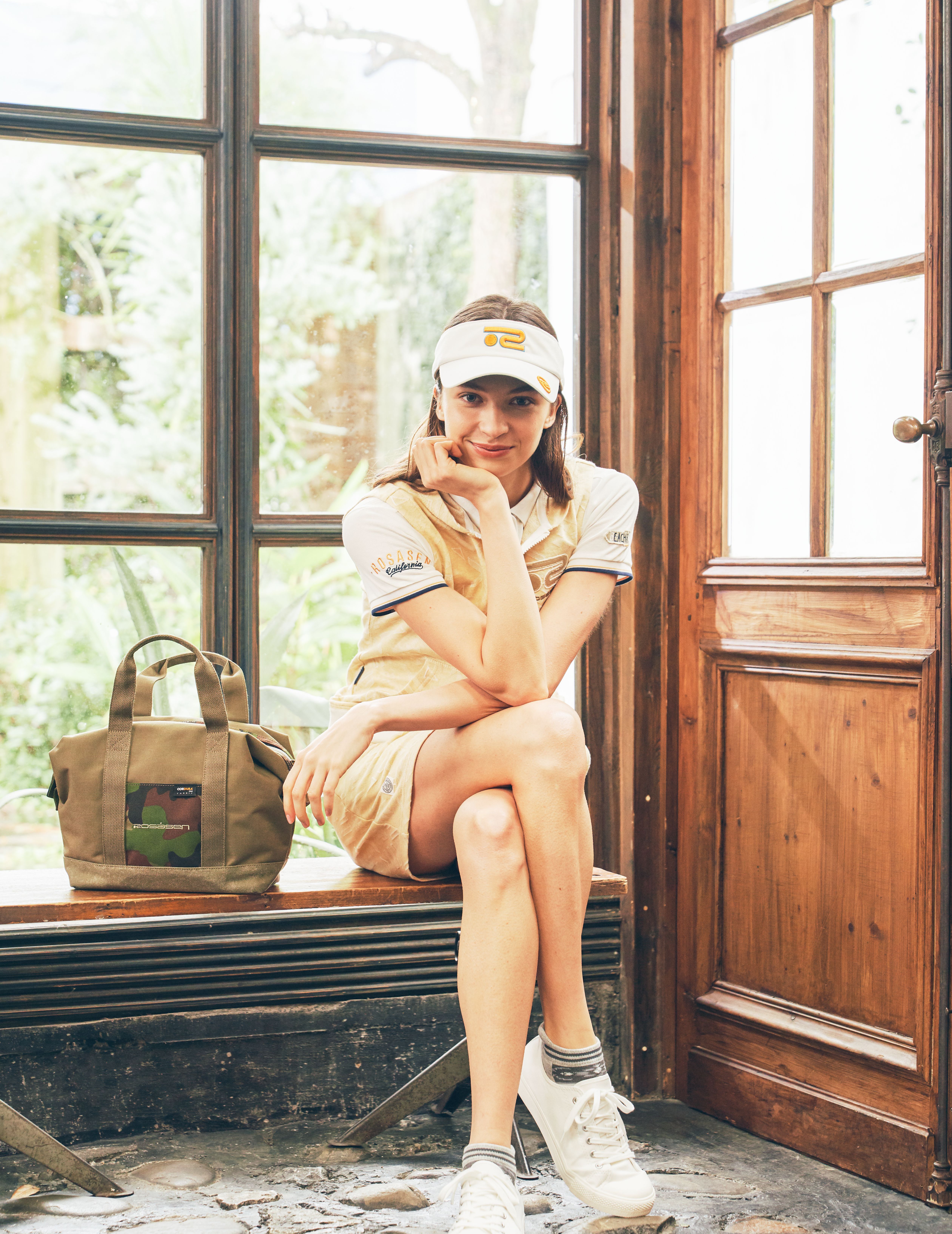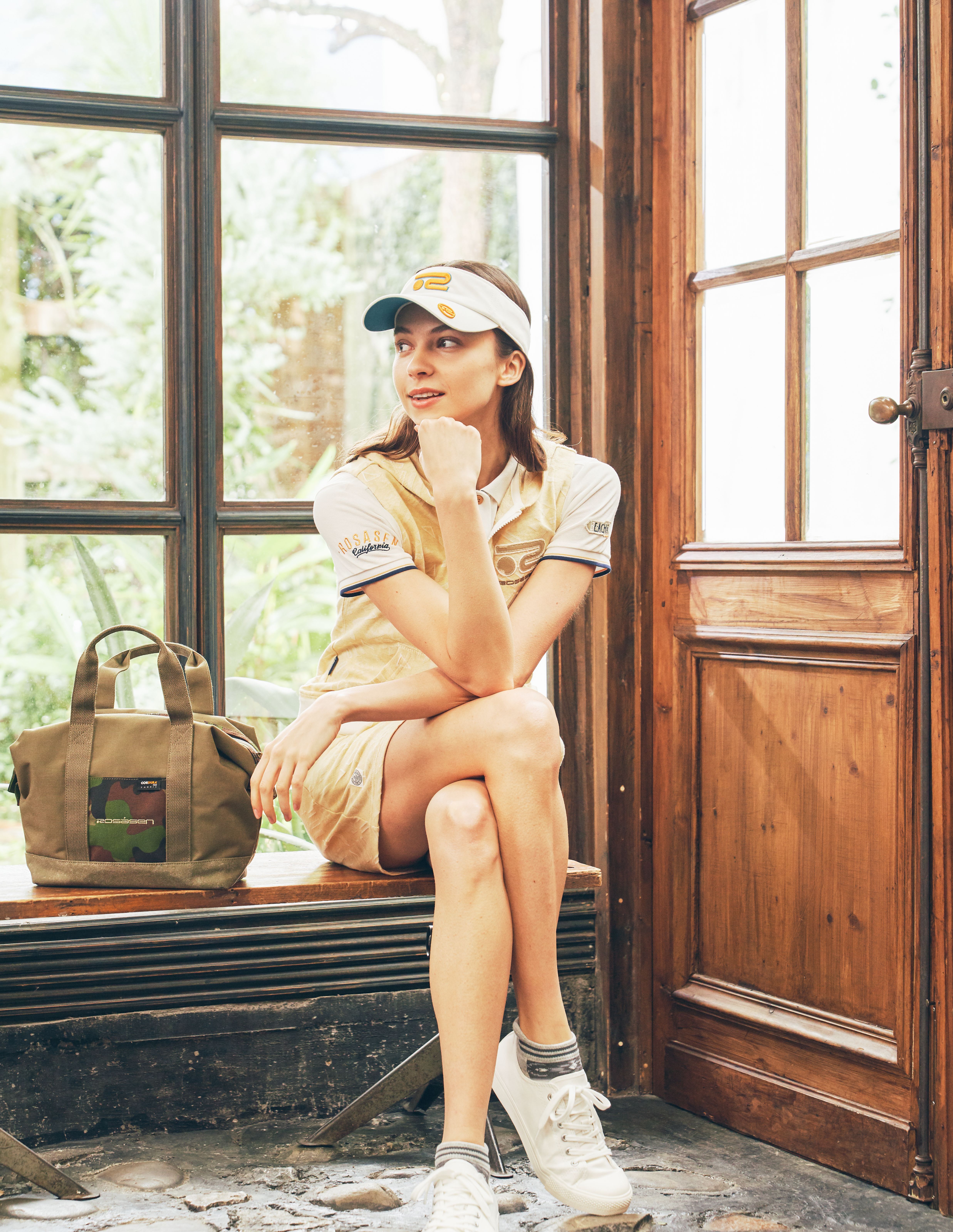 カジュアルな雰囲気だが、中のポロシャツを機能素材で合わせ、カジュアルさと機能性を合わせもったスタイリング。