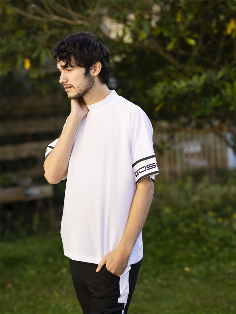 インナーに合わせたモックネックのビッグTシャツとの単品の合わせも抜群です。