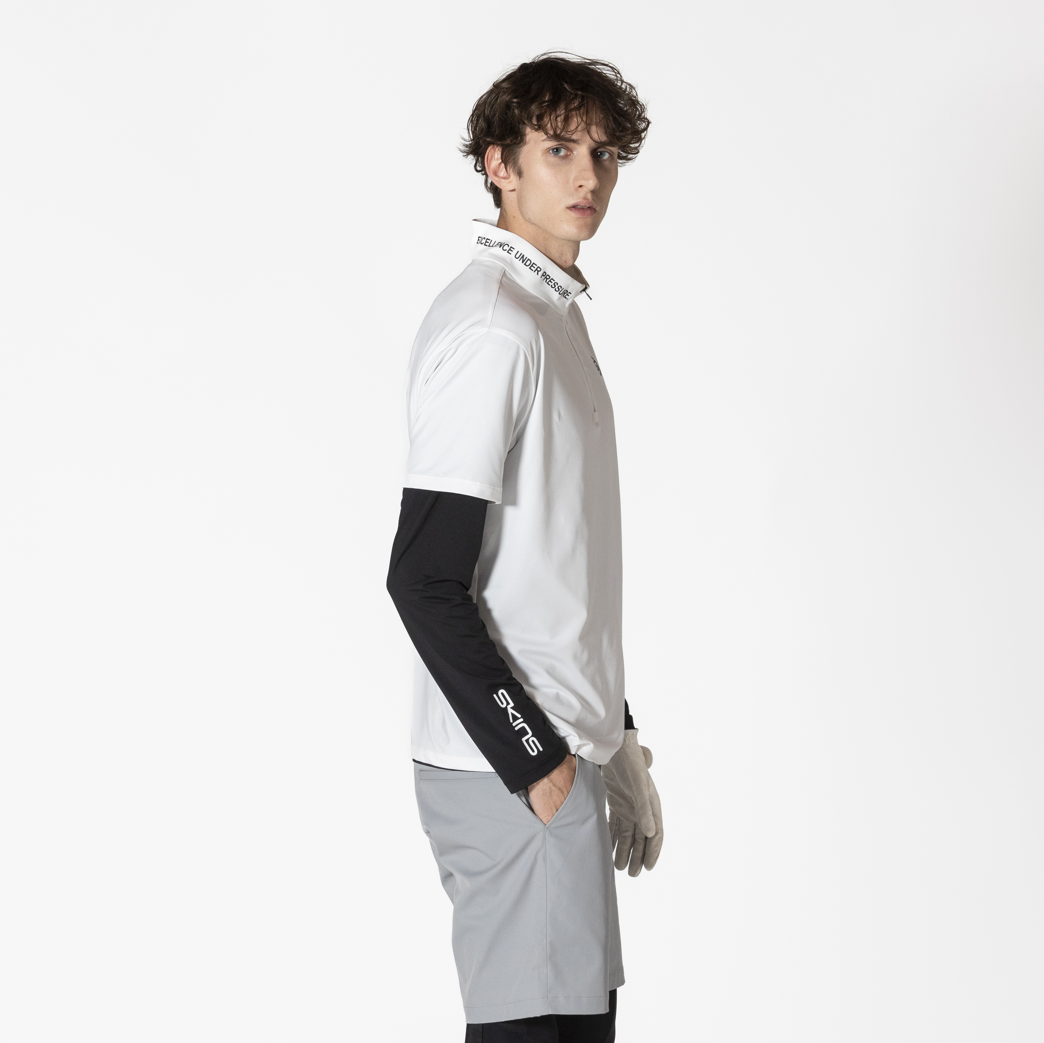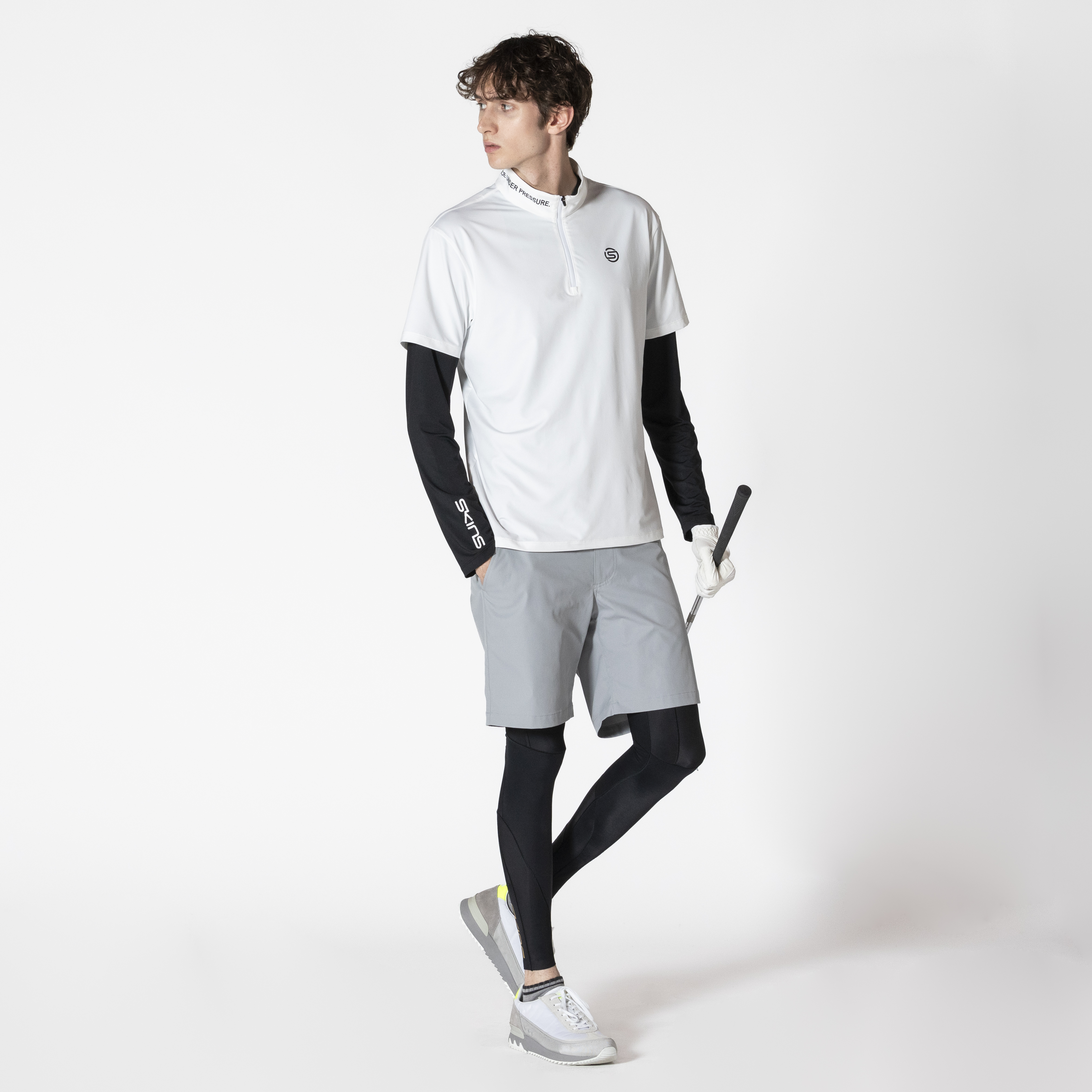 ~インナー付きのポロシャツが便利な2WAYゴルフスタイリング~吸水速乾、接触冷感、UVカット、抗菌防臭性に優れた高機能素材を使用した半袖ジップハイネックシャツです。UVカットカット機能のある長袖インナーシャツとのセットになっています。半袖シャツ単体でも着用可能のため、シーズンイン~真夏まで活躍するアイテムです。