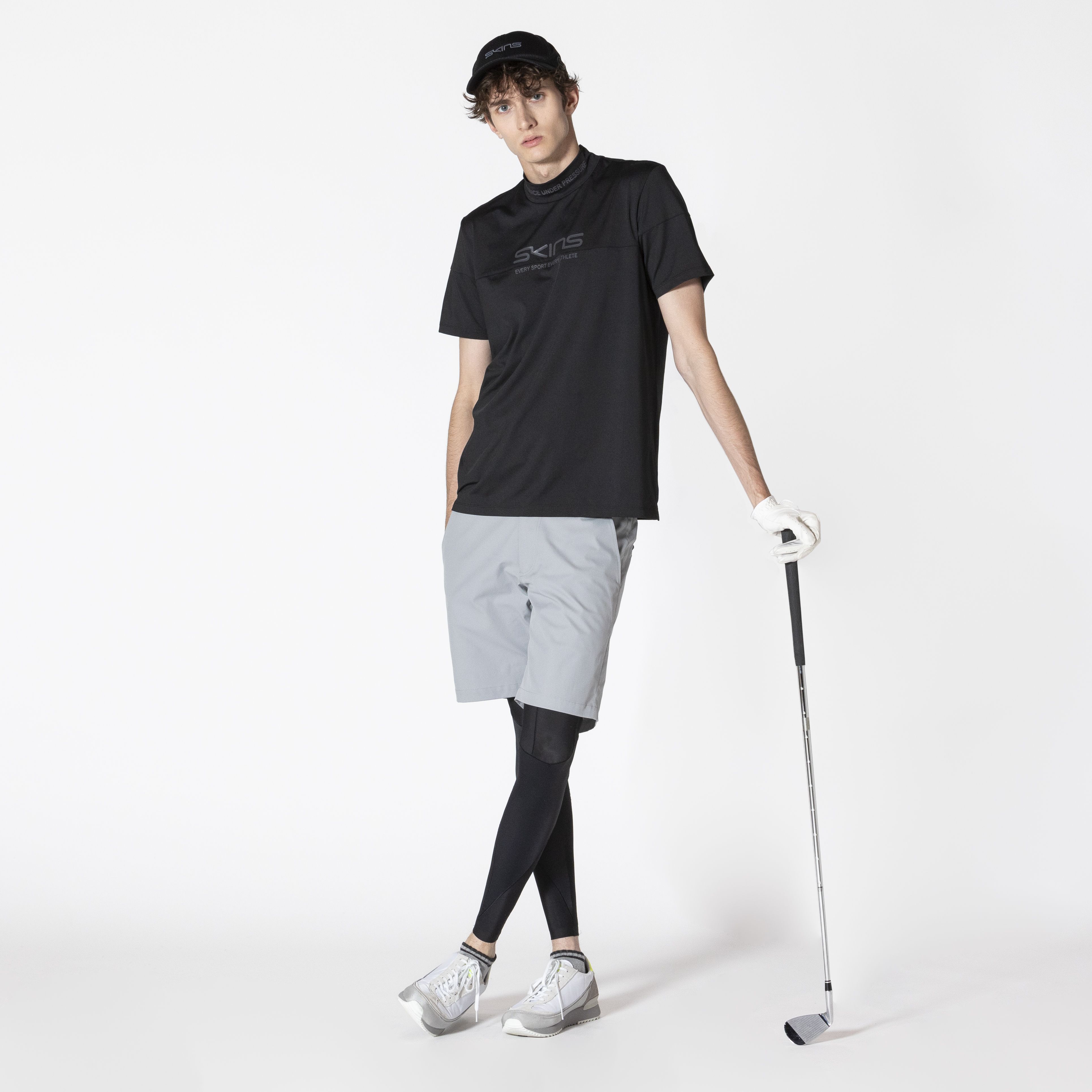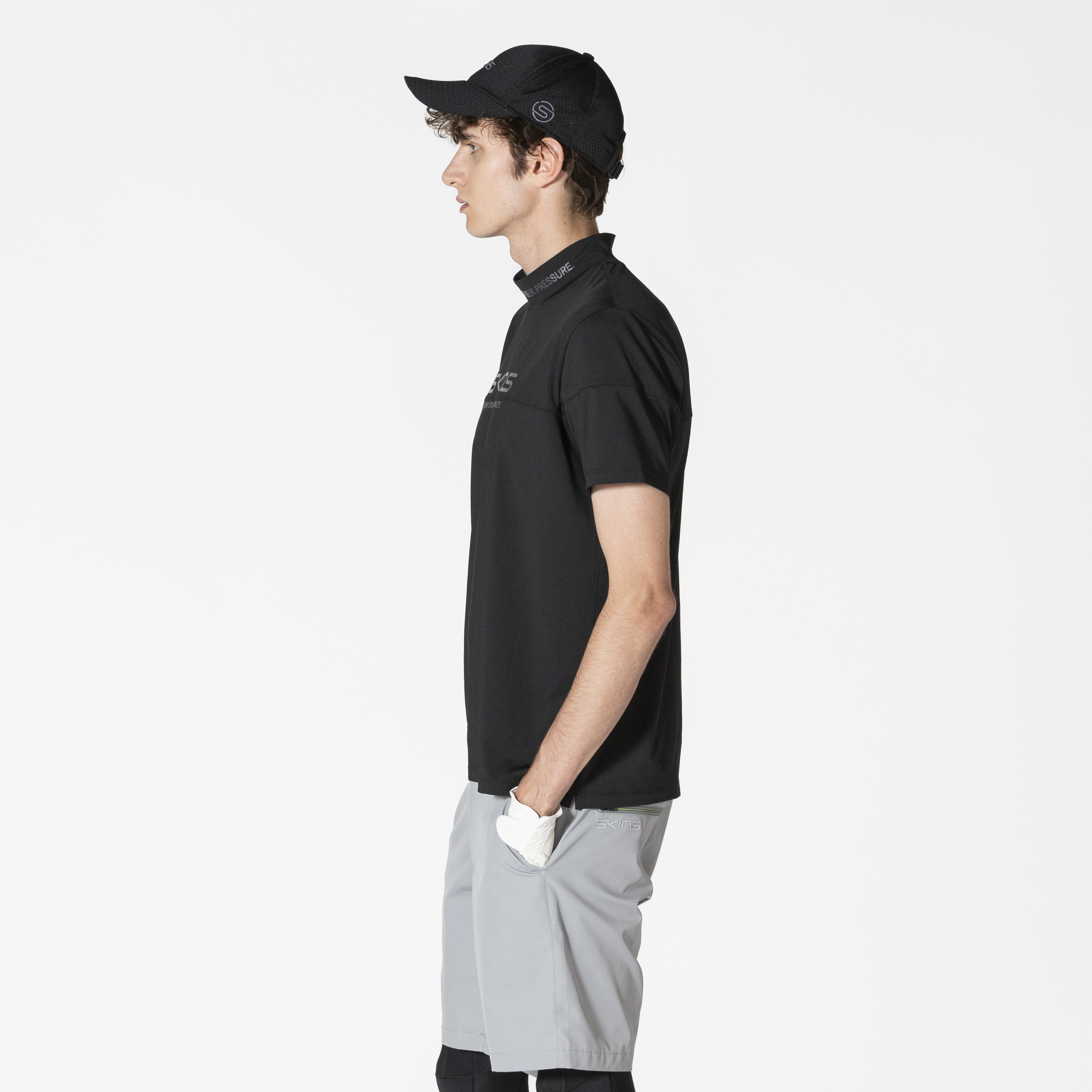 ~主張しすぎないロゴプリントカラーながらも立体的なスマートゴルフスタイリング~吸水速乾、接触冷感、UVカット、抗菌防臭性に優れた高機能素材を使用した半袖モックネックシャツです。胸から袖にかけて切り替えを採用し立体感を表現しています。また、正面のモチーフは素材と同系色の立体感のあるプリントを施しており、統一されたスマートなデザインに仕上げております。