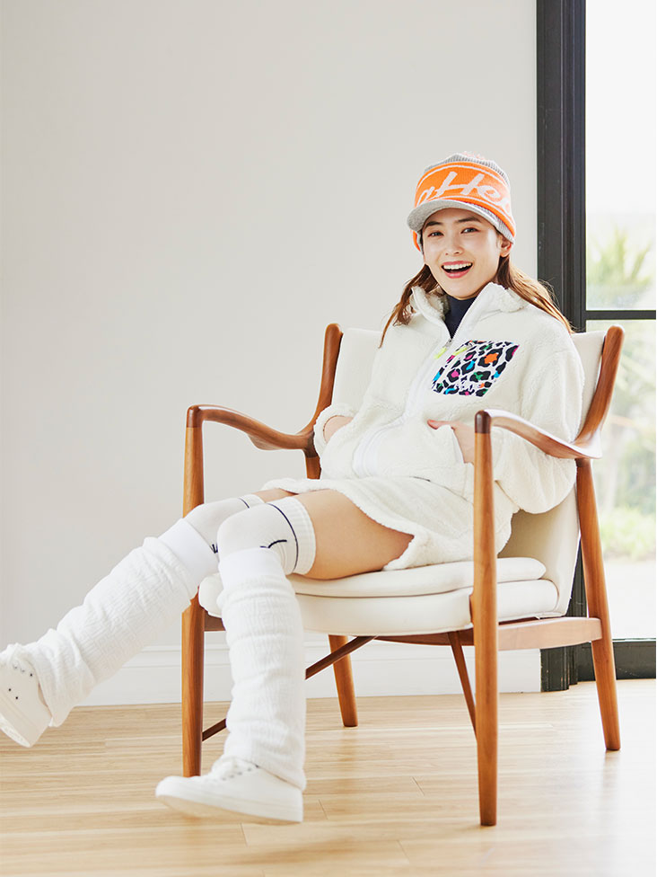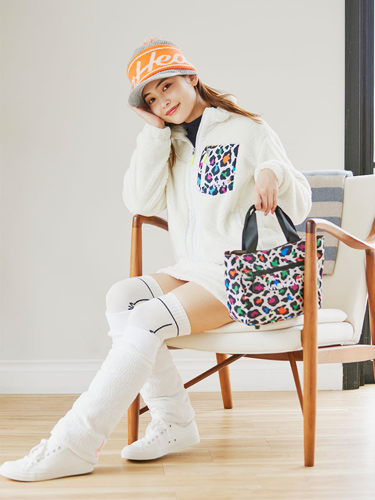 手さわりの良いあったかいボア素材のSETアップで冬のゴルフでも暖かく快適に過ごせるスタイリング。