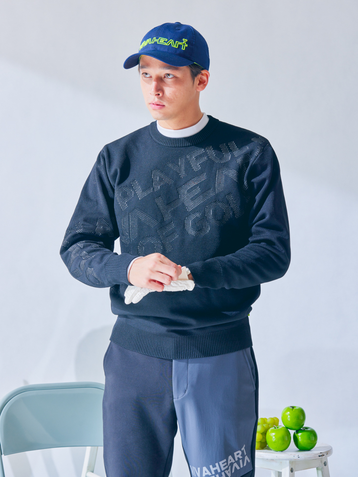 大胆に施されたニットジャガードは、ロゴ部分がメッシュの新しい見え感のニットです。スウェットはキレイなテーパードラインと、片面にタフタ素材を使う事でカジュアルになりすぎません。スウェットの生地は表面に綿を使用しナチュラルな見え感に、裏面はポリエステルで、滑らかな履き心地に。ブラックとグレーのスタイリングの中にホワイトのアクセント付けることでよりクリーンな印象に。