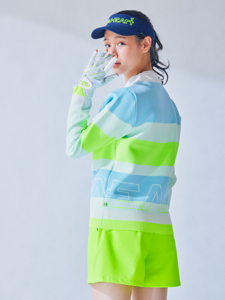 ジューシーなフルーツの様なボーダーカラーニットと、ショーツで色を合わせた鮮やかなスタリングです。