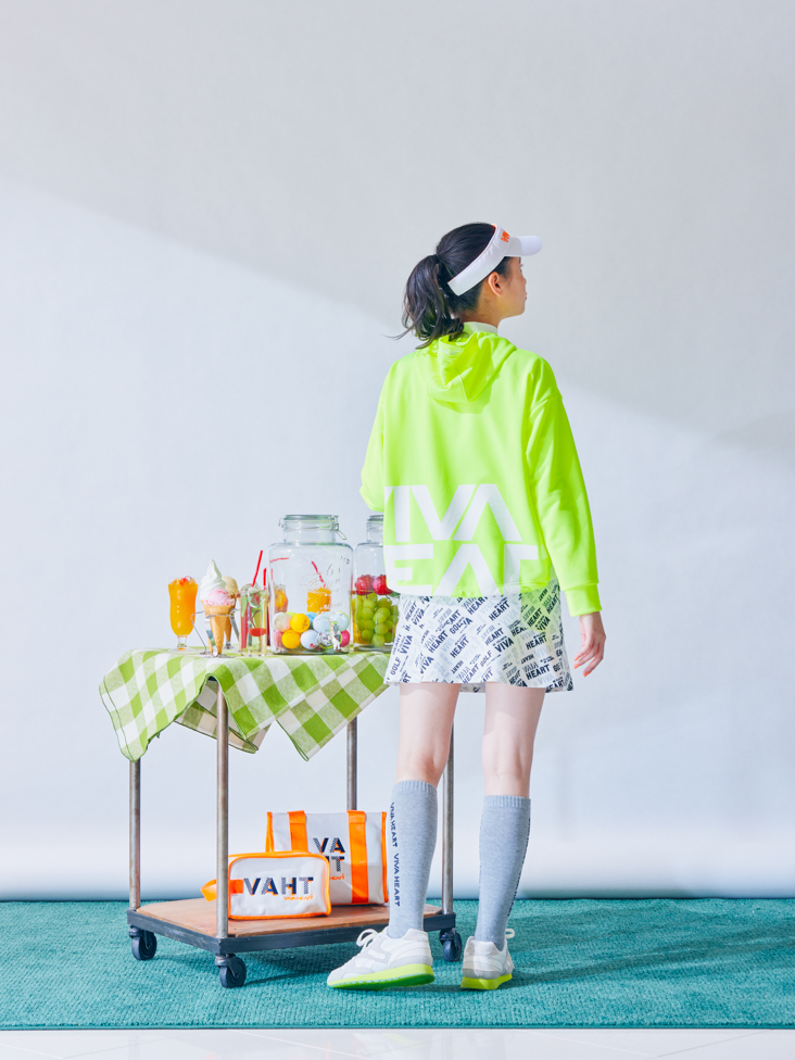 ~モノトーン柄のスカートとネオンイエローでスポーティーなスタイリング~
