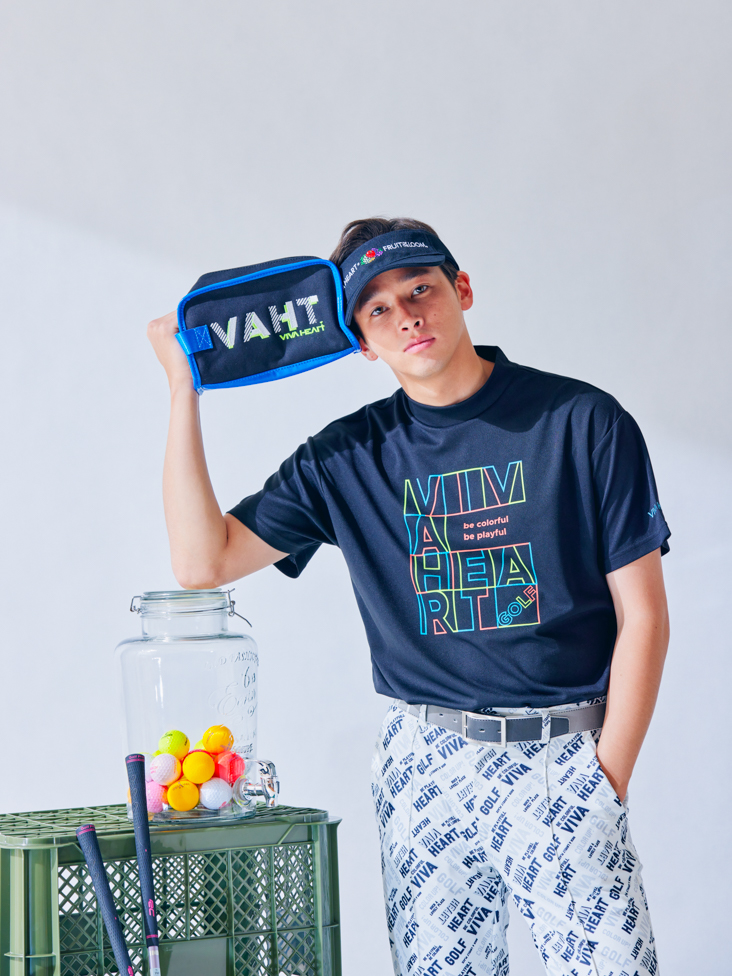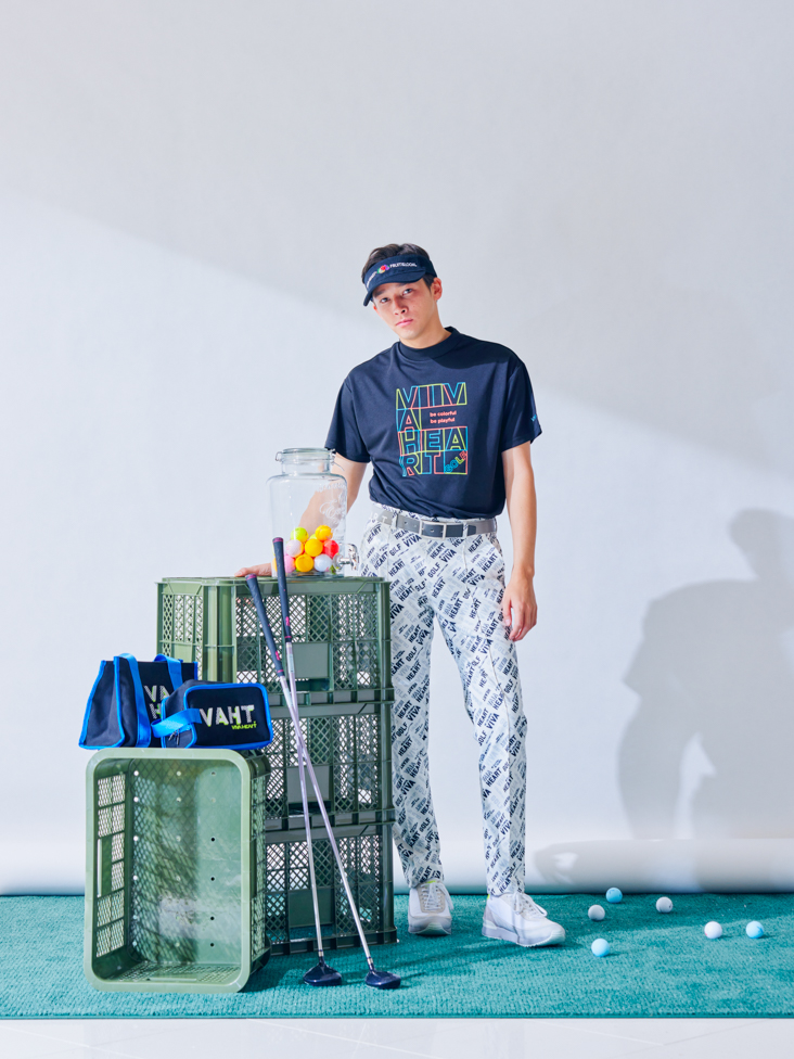 「スタイリッシュボディドライ」を使用した高機能ボトムスの登場。今季はモノトーンのタイポグラフィーのプリントを載せいつもとは違った印象を持たせています。