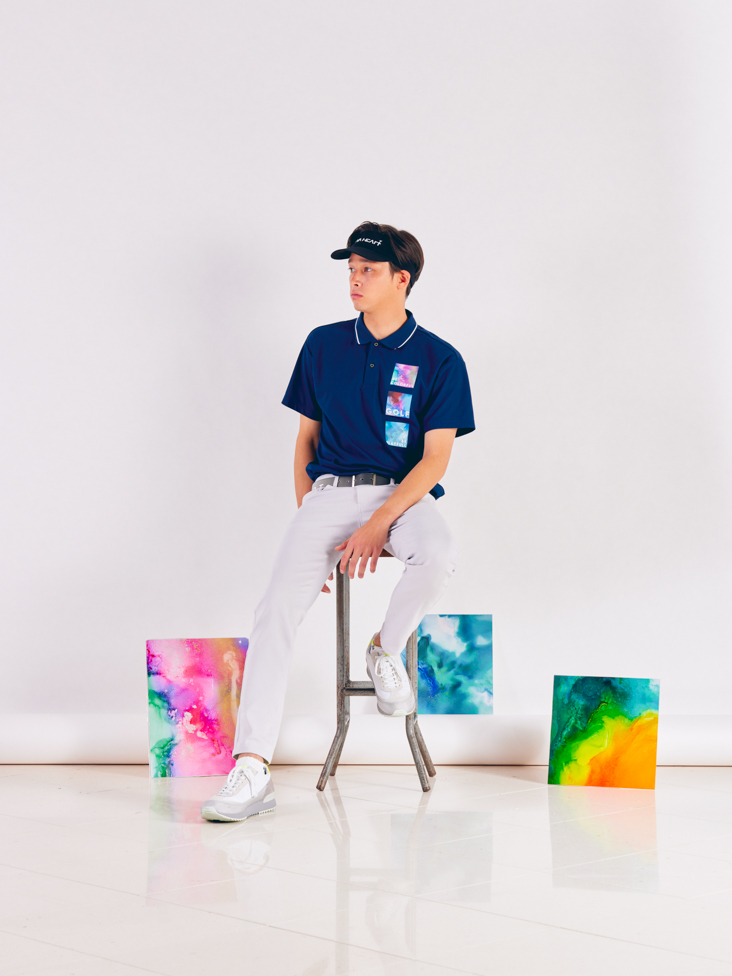 スクエアに区切られた3段のアートモチーフのポロは、キレイめなカノコ素材を使用したレギュラーフィットを採用。グラフィックにインパクトがあるので、ボトムスはシンプルなスリムタイプのチノで合わせると相性抜群のアイテムです。