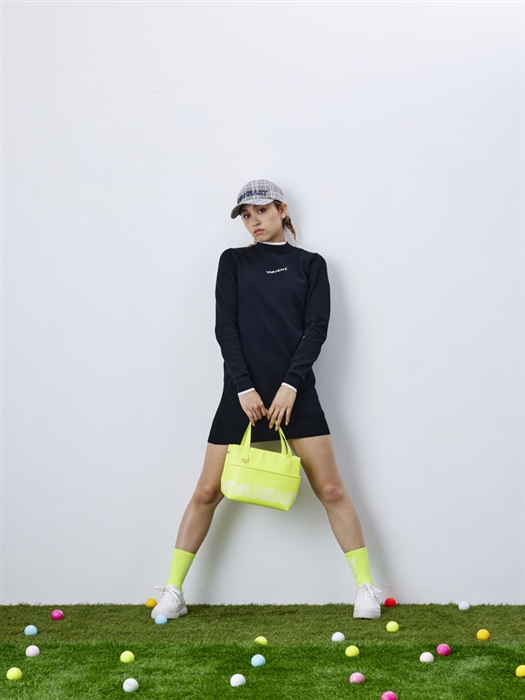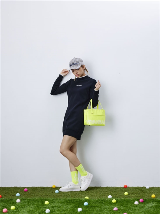 軽量なポリエステル糸を使用した着やすく便利な無地のニットワンピースには、アクセントになるカラーとデザインの小物を合わせるのがおすすめです。落ち着いたワンピースが遊び心のあるアクティブなスタイリングに仕上がります。