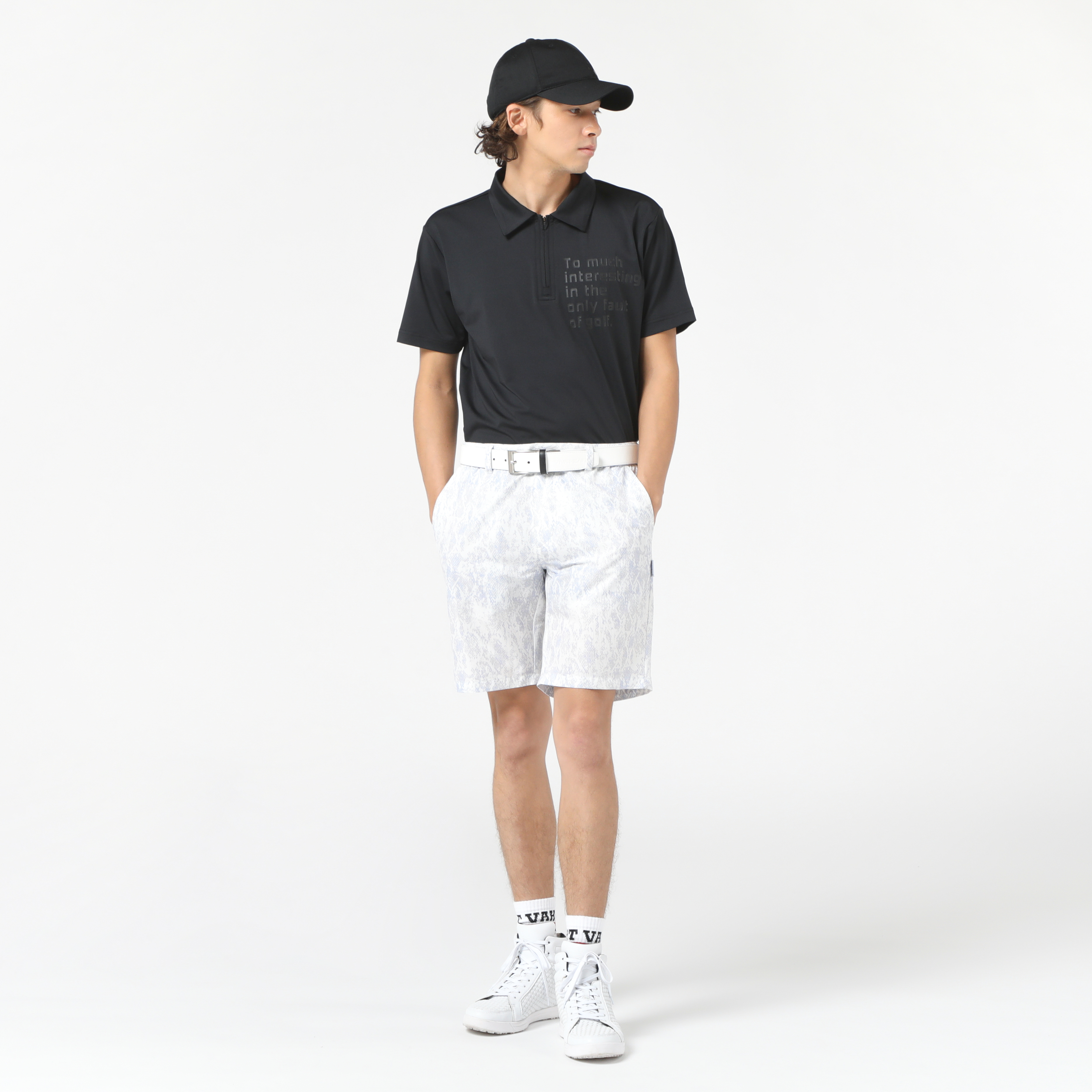 半径3メートルに個性を主張するシリーズ。遠目にはとても素直な印象のゴルフスタイル。さて、パンツをよく見て下さい。実は絶妙の色差で表現されたパイソン柄のプリントが施されているのです。この少しスパイシーな毒気がプレイヤーの高揚感をそそります。