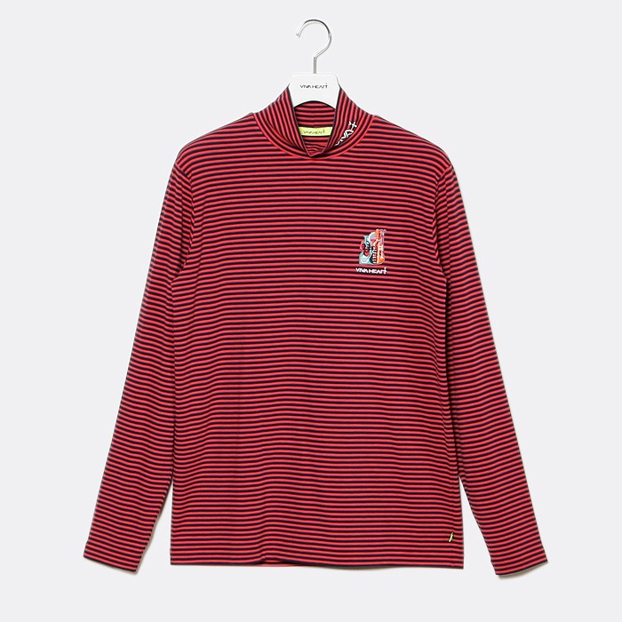 ベアボーダー長袖モックネックシャツ