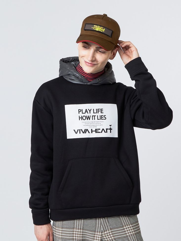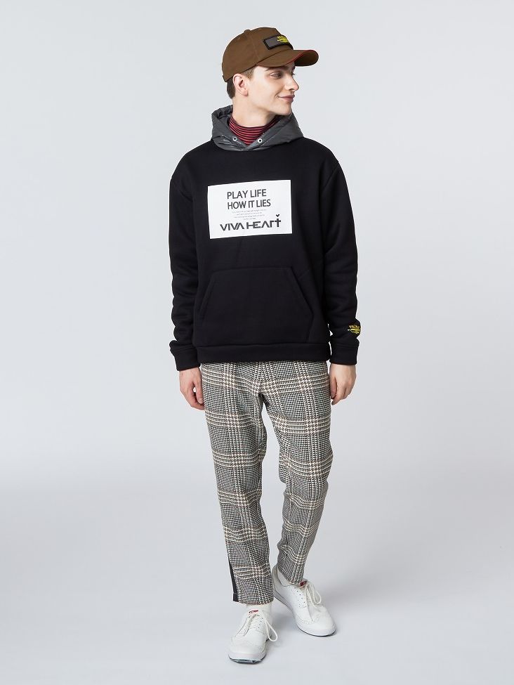 PLAY LIFE HOW ITLIES(あるがままに人生をプレイしよう!)今季のメッセージが込められたタイポグラフィーの裏起毛フーディーとオーセンティックなサイドラインチェックパンツ。