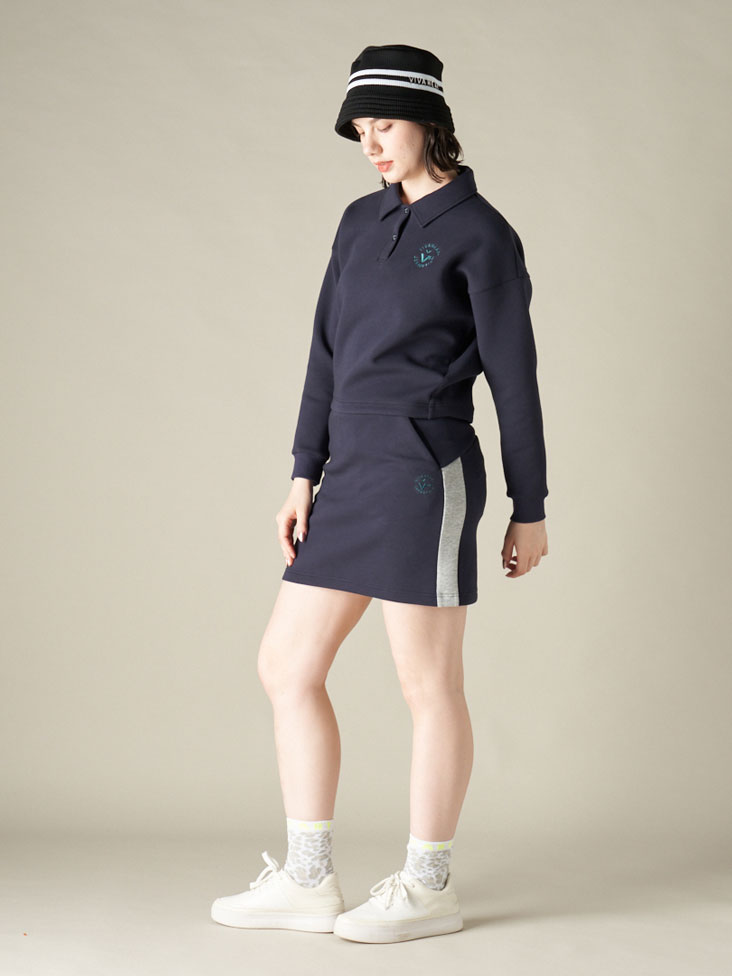程良い肉感のダンボール素材を使用したスウェットセットアップ。ラフ感のあるデザインですがスカートのラインがスポーティーさをプラス。柄アイテムを入れて少しアクセントをつけるのもオススメ。