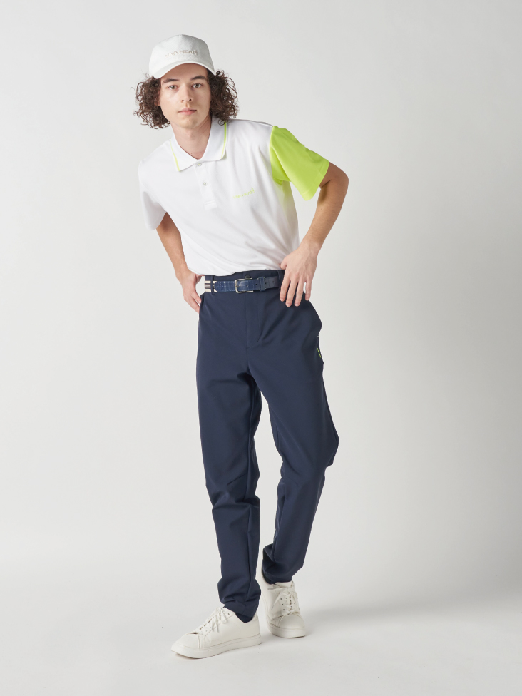 シンプルにVIVAHEARTらしいネオンイエローをアクセントに組んだスタイル。25SSでも快適なラウンドを意識したスタイルの1つです。リニューアルした股上の深いボトムは安心感があり、快適にプレイできるのでオススメです。