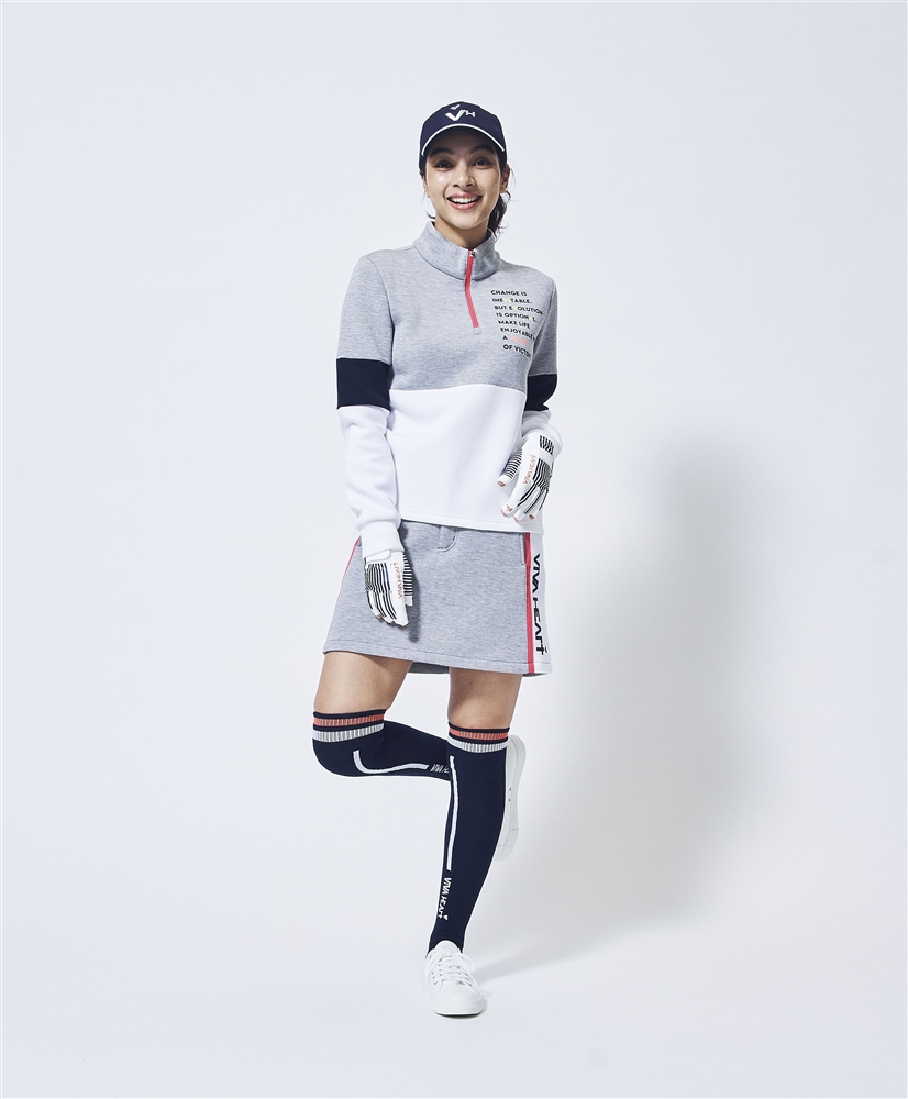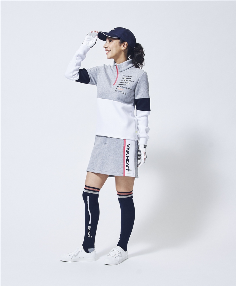 ウェア契約しているプロがリスペクトしている言葉をタイポグラフィで表現したアイテム。ストレッチ性のある中肉のダンボール素材を使用し、動きやすさ、着心地感も抜群です。モノトーンの色合いのなかに蛍光カラーをポイントで使った見え感はスポーティーな中にビバハートらしいPOPな印象を、程よいラフ感がお洒落見えするスタイリングです。ゴルフラウンドから練習まで着用できる新しいスタイリングです。