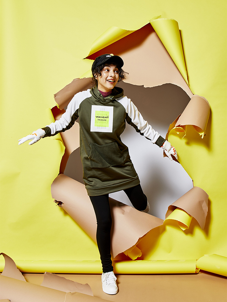 生地の裏面が起毛しているソフトで肌触りの良いフリースワンピースはこの時期のゴルフラウンドで一枚で主役になれる旬なアイテム。ロゴメッセージもデザイン性を持たせた使い方で新鮮な見え感を演出しています。リラックス感もあるのでラウンドだけでなく練習場でもどんなゴルフシーンにも対応可能なスタイリングです。