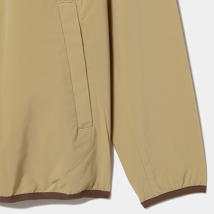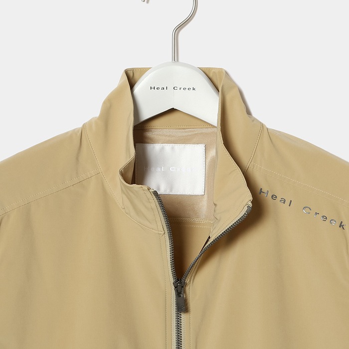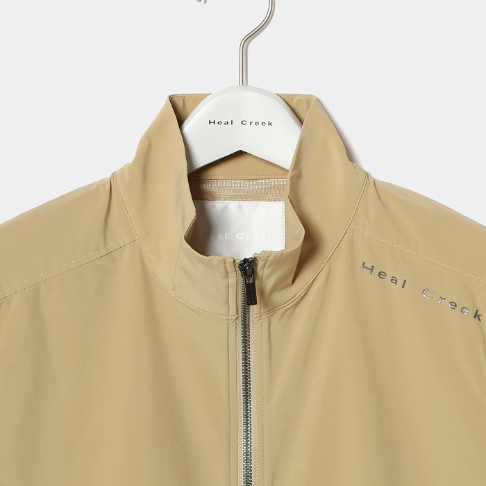 しっとりとしたナイロン素材で肌触りが上品な素材が特長。ベーシックでシンプルなデザインで着回しやすく汎用性あるブルゾン。背中にはベンチレーションデザインで通気性があり快適です。金属調の光沢感を持ちながら軽量で高級感あるメタリュクスファスナーを使用。袖口、裾はパイピング使用で程よいフィット感です。