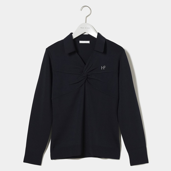 フロントツイストがポイントのリブ編みの長袖ニットです。ゴルフウェアでは珍しい、立体的なデザインを採用。大人っぽい胸元を演出しています。素材は伸縮性があり発色が良く、肌当たりが涼しいビスコースナイロンを使用。暑さの残る秋口にはぴったりの質感になっています。