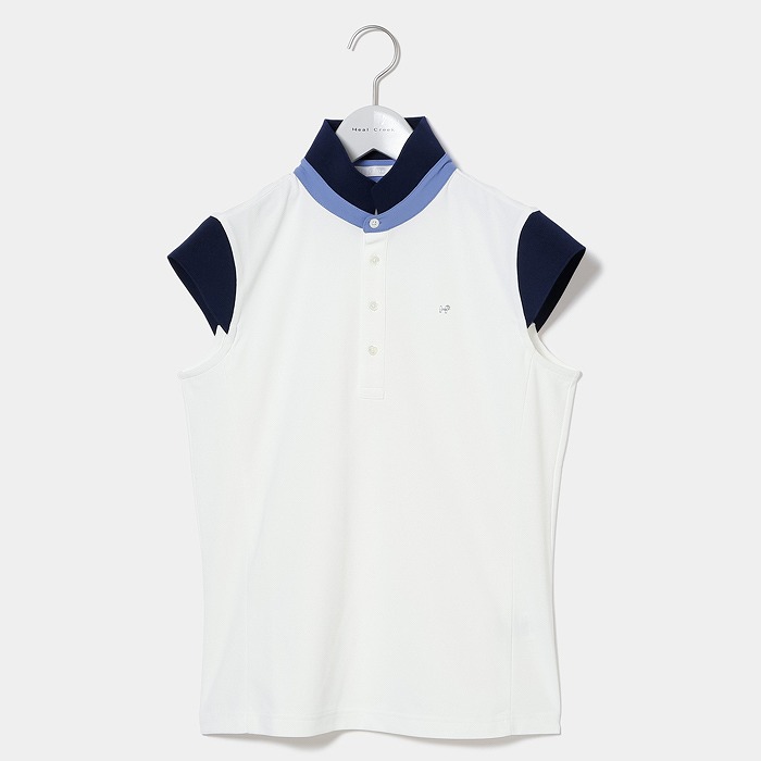 ハイゲージで編み上げた非常に小さい網目が特徴のマイクロ鹿の子を使用したキャップスリーブシャツ。吸水速乾性とストレッチ性は言うことなし、何よりも圧倒的な肌触りが魅力の素材です。表面のわずかなシャリ感、裏面のとろけるようなタッチはハイゲージの編みによるもの。編立パーツのスタンドカラーと肩先を包む小さな袖、華奢な前立て、パネルラインできちんとした印象に仕上げたアームホール・・・こだわりのディテールをシックな配色にのせた上品な大人のトップスです。
