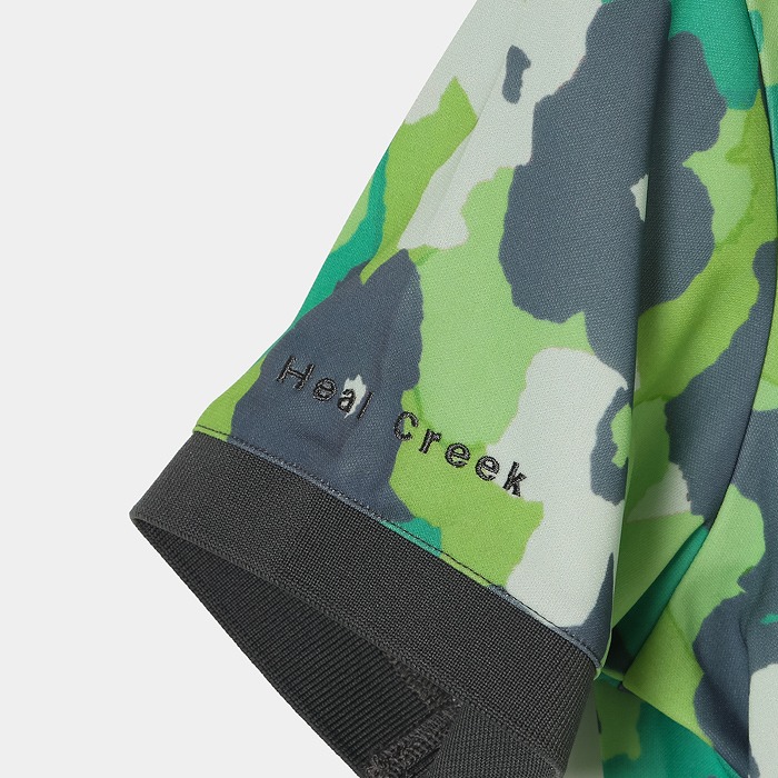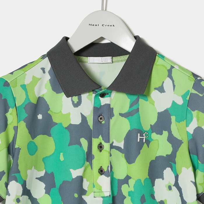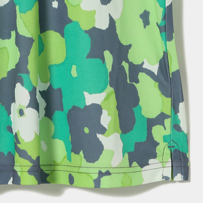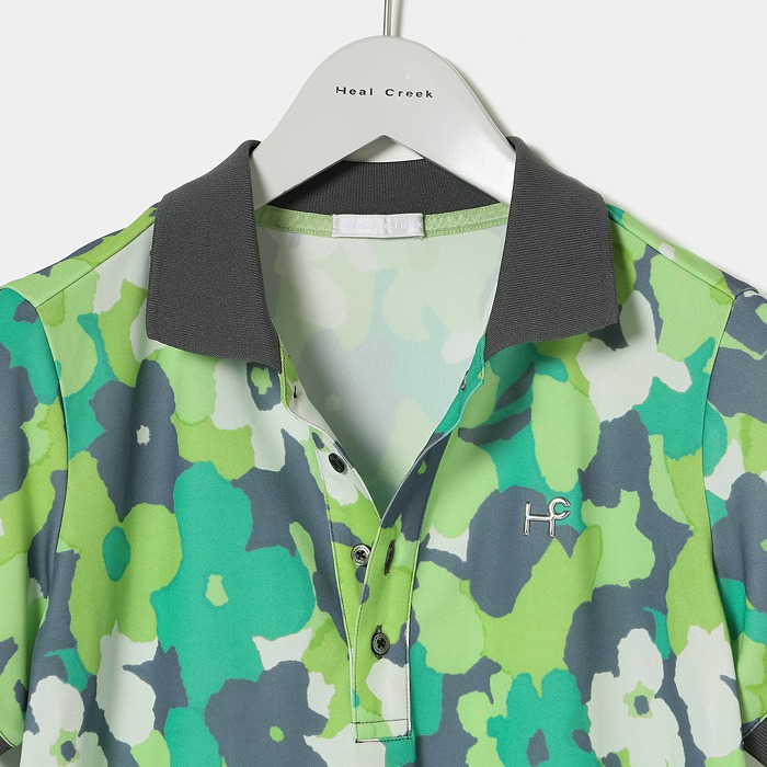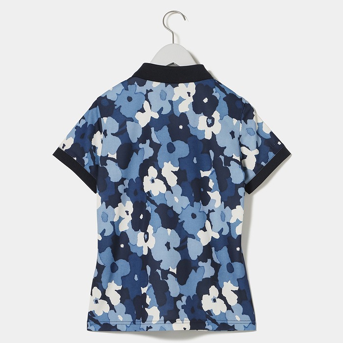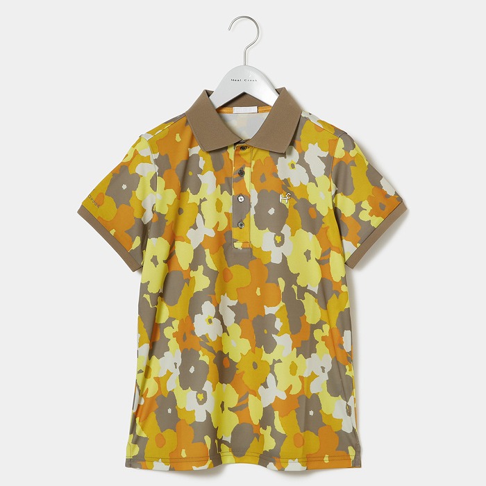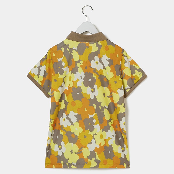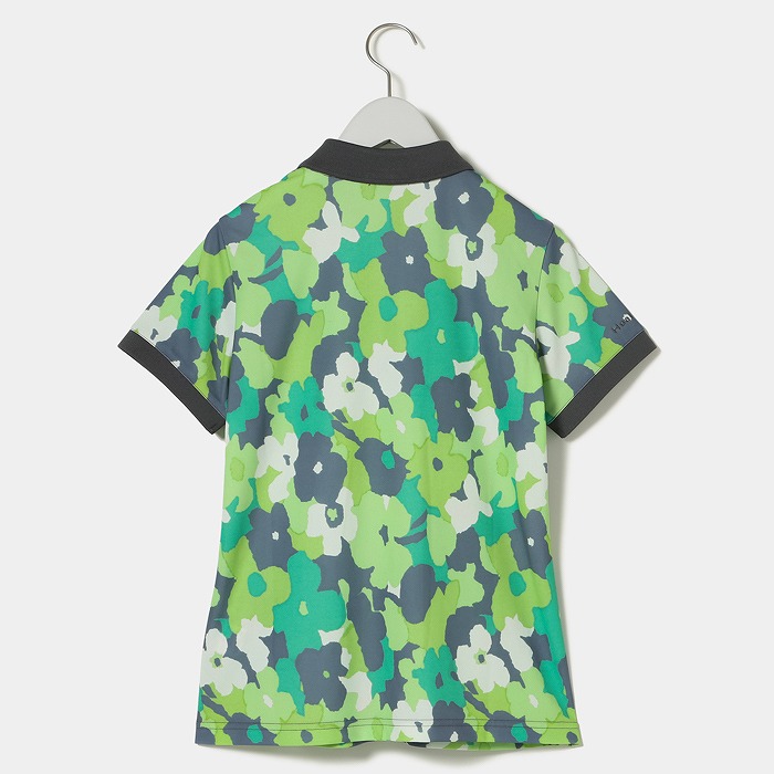 ポップなタッチで描かれた花柄は、ひねりのきいた配色でどこか大人っぽく仕上げています。 下地には強撚スムースをチョイス、さらっとしていて透けも気にならないので、1枚でも安心して着用できるポロシャツになっています。 衿や袖口には編立パーツを使用し、黒蝶釦で引き締めています。 華やかなポロシャツはギフトにもピッタリなアイテムです。