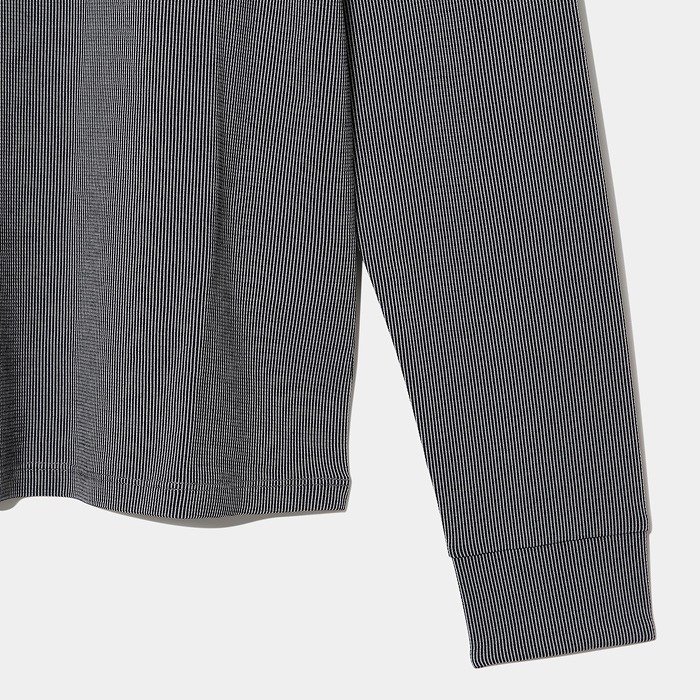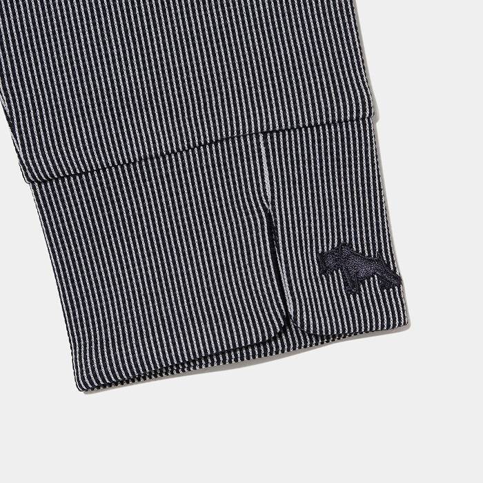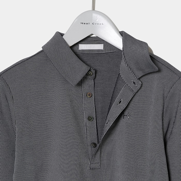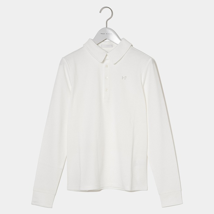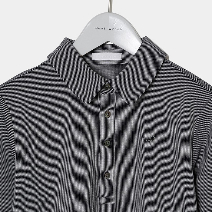 老舗シャツ生地メーカー、アルビニ社の綿糸『CORCORAN(コーコラン)』とポリエステル糸を交編して編まれたサーフニット地のポロシャツです。綿の肌触りとポリエステルの吸水速乾性が快適な着心地を提供します。綿が好きな方にぜひおすすめしたいアイテムです。胸元にラインストーンのHCマークを、釦レスのカフス調切替にはヘンリーの同色刺繍がさりげなく施されています。シンプルでありながら細かなディテールにこだわったポロシャツです。