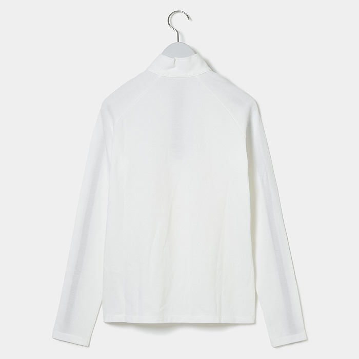 汗を吸い、すぐに乾く、綿100%の吸汗速乾素材を使用した、ハーフジップのスタンドカラーシャツです。特別な加工によって機能面を向上させたこの素材は、快適な着心地を提供します。特に綿が好きな方にはおすすめです。ファスナーや袖のラインの配色使いがポイントのスポーティなデザインです。袖のラインにはロゴプリントが施されています。スタイリッシュな一着です。