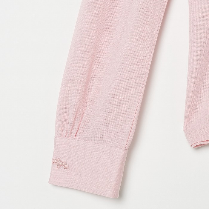 この長袖シャツは、ゴルフウェアでは稀少なフロント釦デザインです。通年着用可能な薄手でサラサラな素材が心地よく、肩部分に寄せたギャザーが柔らかな雰囲気を演出しています。衿にロゴ、カフスにはアイコンのヘンリーが同色で刺繍されています。一枚で着ても様になり、ジャケットやニットのインナーとしても活躍する便利なアイテムです。抜群のストレッチ性で袖を通した瞬間にわかる心地良さをぜひ体験してください。