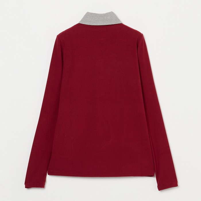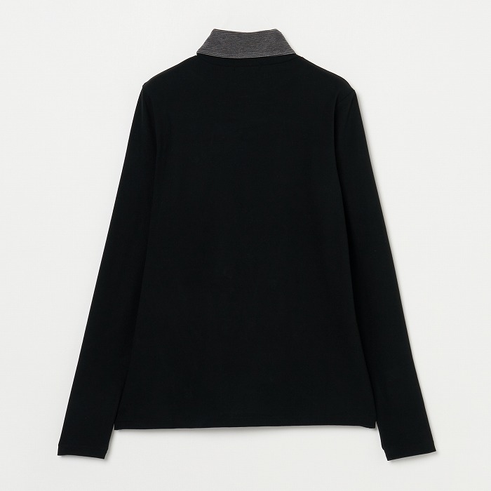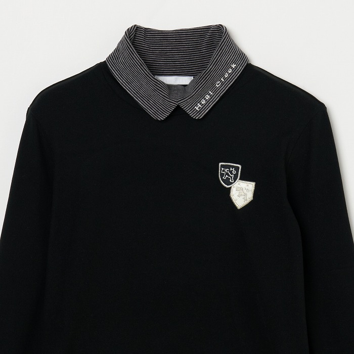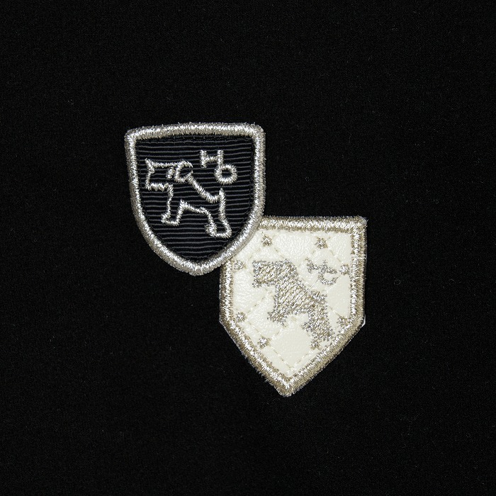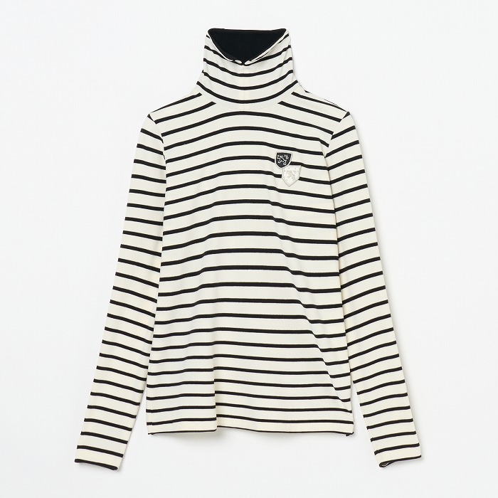 肌寒さを感じる季節には、実績があり暖かみのあるラグジュアリーな素材感のインナーが活躍します。お洗濯を繰り返しても美しい起毛感が長持ちします。ラメ糸を使用したヘンリーのワッペンを重ねてシンプルなハイネックインナーを可愛らしくアレンジ。衿の裏側には配色を効かせた別布を使用しています。折り返して着用すれば小さなシャツ衿のように、違った雰囲気で楽しめるデザインです。