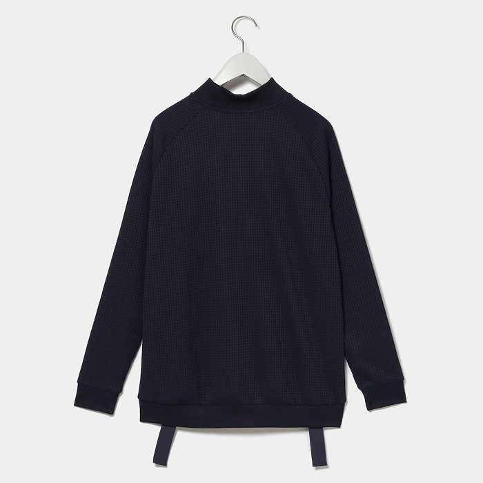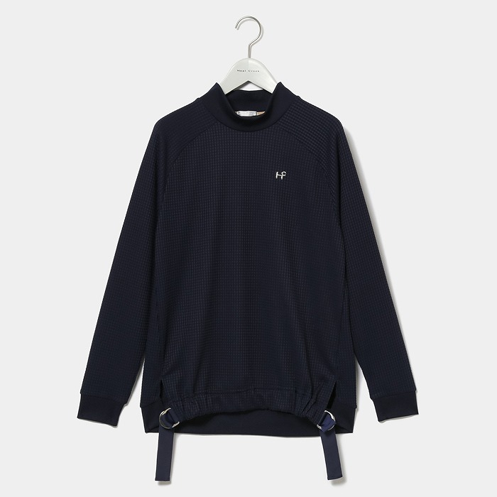 今シーズン新しく開発したジャカード素材。 しっかりとした凹凸感がありながら、とてもしなやかな着心地です。前身頃裾にはギャザーを寄せて、サイドのDカンからグログランリボンが流れるディテールです。 後ろ見頃はやや長く、前後差のついたデザインです。 トレーナー感覚で気軽に着れて、1枚で様になるアイテムです。・ストレッチ ・吸水速乾 ・UVカット