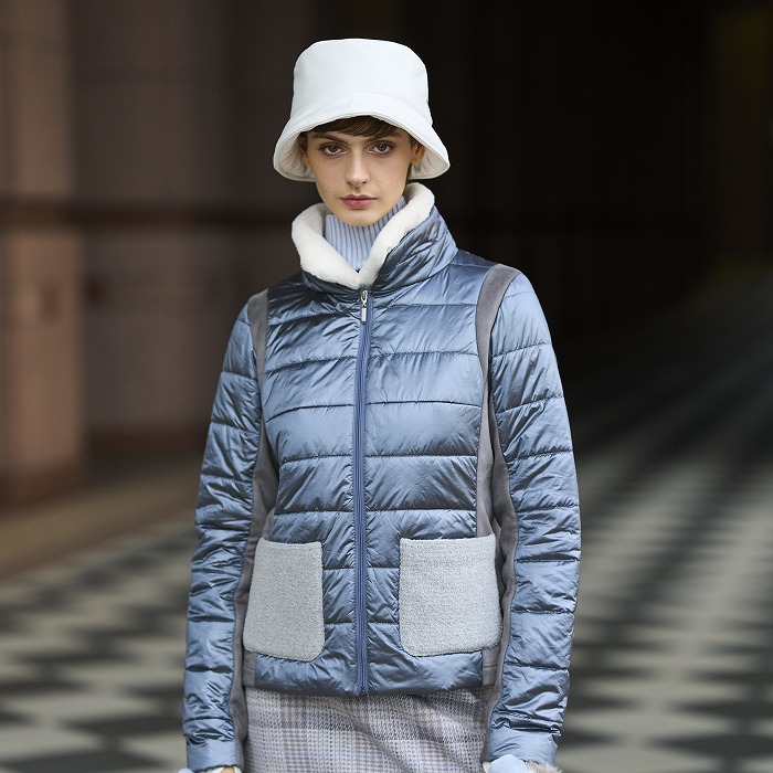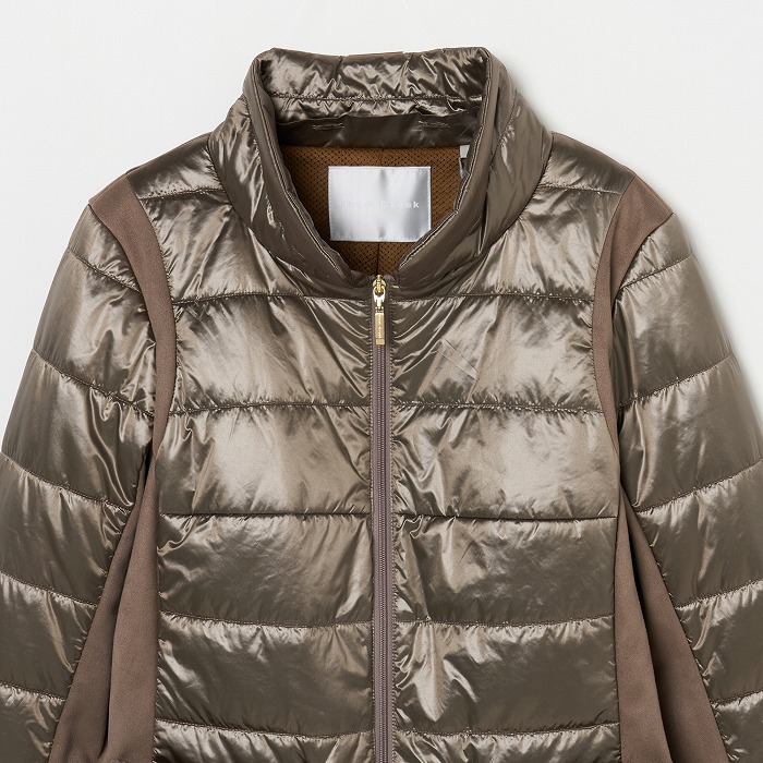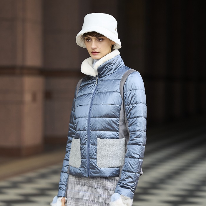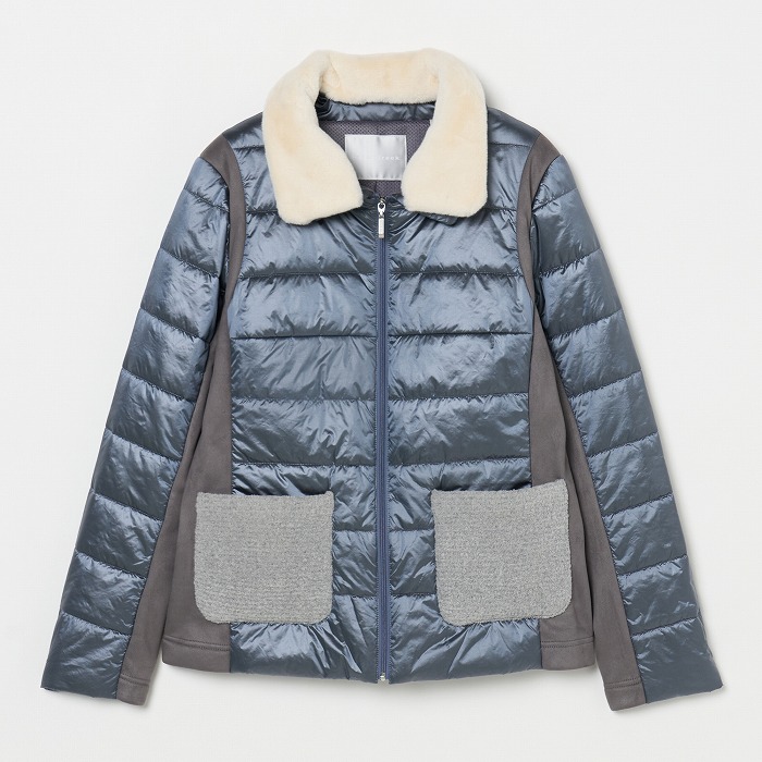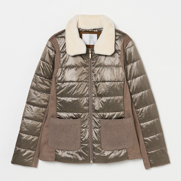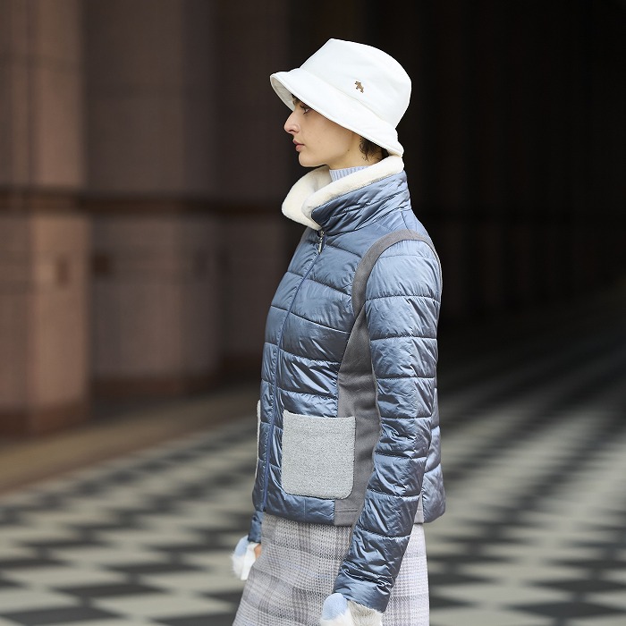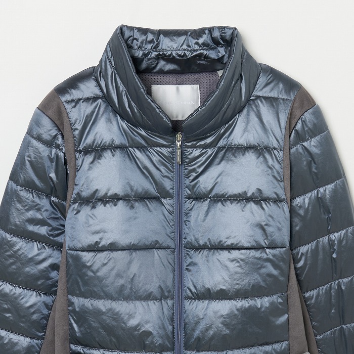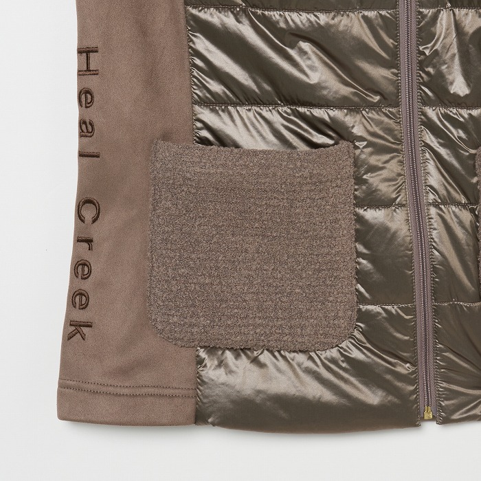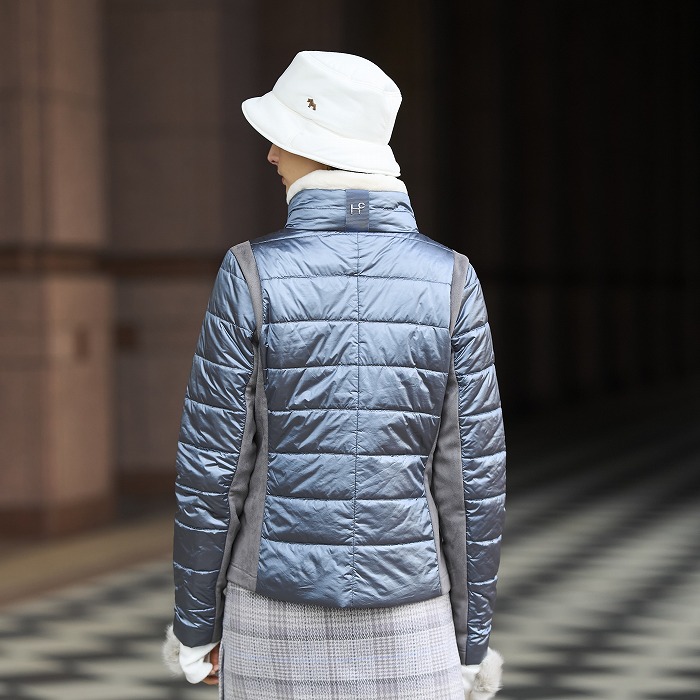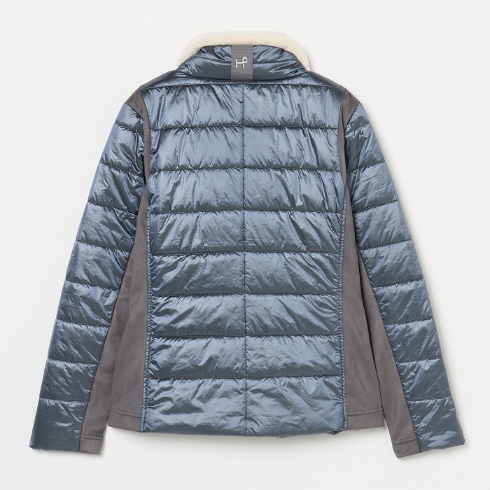シャンブレータフタ×スエードフリースにブークレーニットでアクセントを加えた中綿プレイブルゾン。シックな色を重ねて大人のゴルフウェアを作りました。顔映りをよくする白いエコファーは釦で簡単に着脱が可能です。中綿部分にはオクタという特殊裏地を使用しており暖かくプレイできます。スエードフリースのストレッチ性により、しっかりファスナーを閉めてもスイングできる頼もしいブルゾンです。