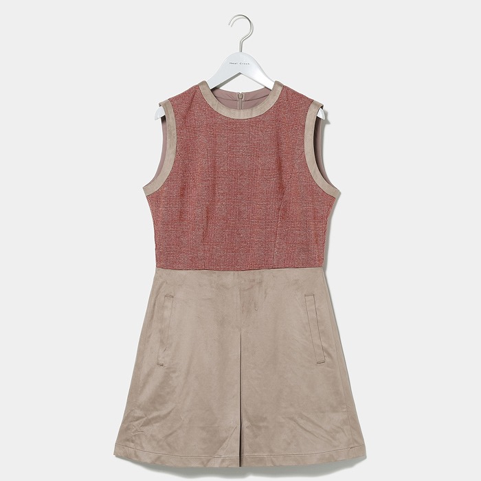 Heal Creek(ヒールクリーク)ムリネジャージグレンチェック×フェイクスウェードワンピース