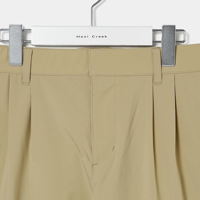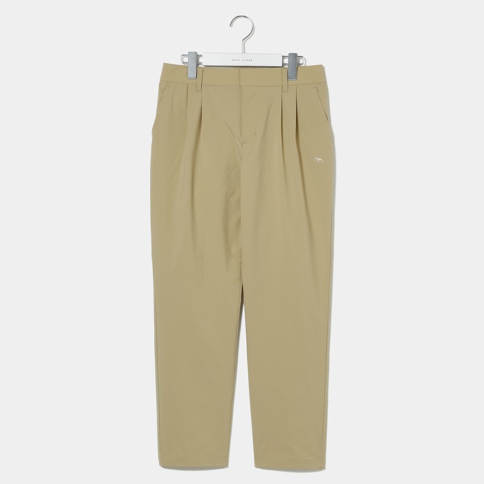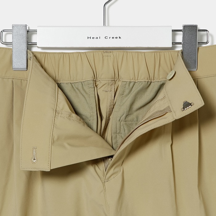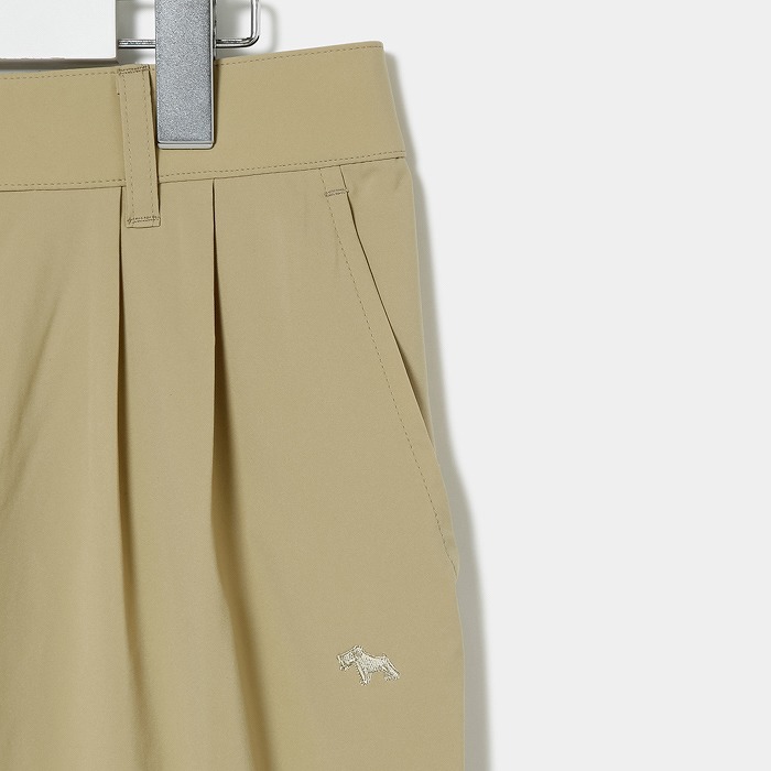 暑さの厳しい日にはピタピタのパンツははきたくない、そんな時には程よいゆとりがある2タックパンツをお勧めします。素材にはSOLOTEXというソフトなタッチと優れた形態安定性が特徴の糸を用いた高密度ストレッチタフタを使用、さらりとした肌触りで薄手ながらしっかりとしたコシもあり、盛夏のボトムにピッタリです。接触冷感、撥水機能もあり、朝露や、梅雨時の泥はねにも安心です。ベーシックな3色展開です。