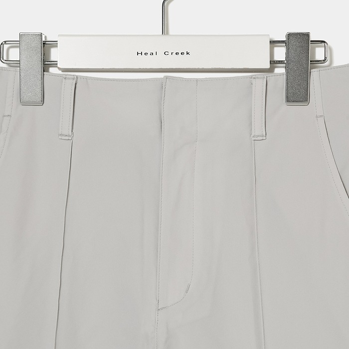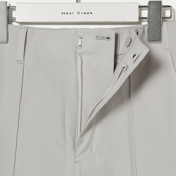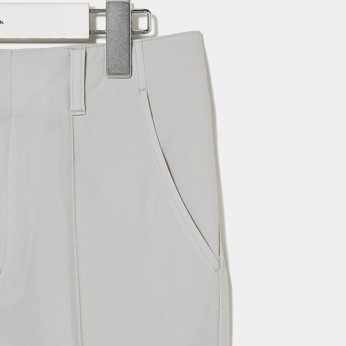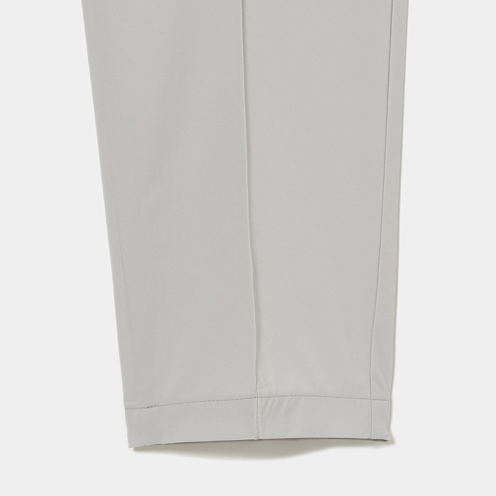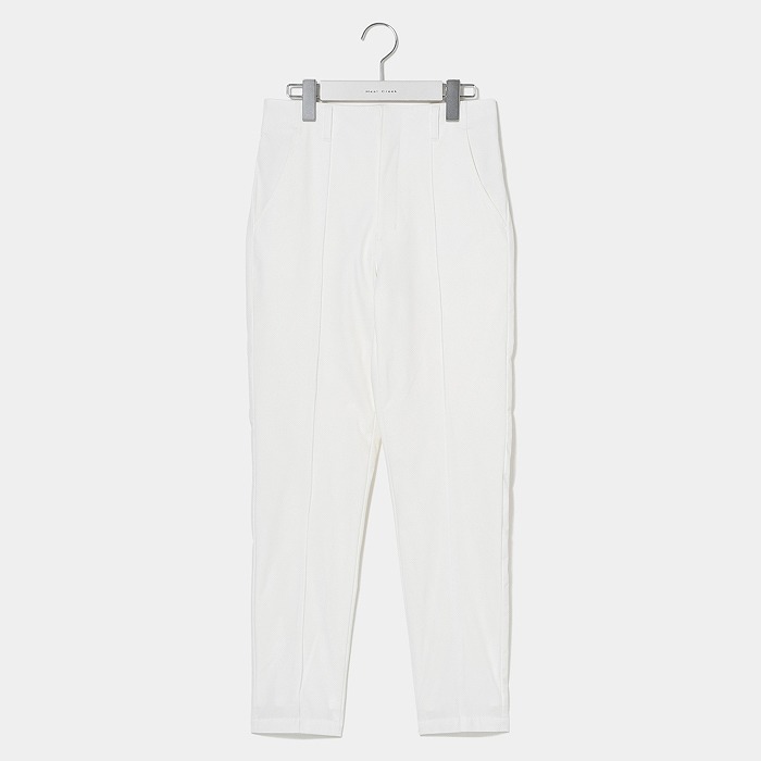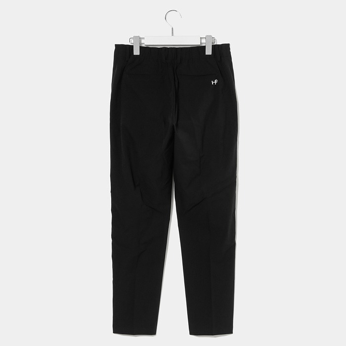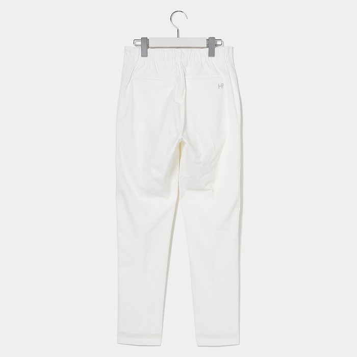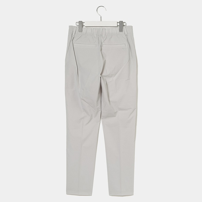 撥水機能の付いた4WAYストレッチ素材を使用した商品です。ウエストの切り替えをなくし、ウエストから裾に向かって緩やかに細くなるテーパードシルエットを採用しております。これにより、腰高で美脚を強調したスタイルを演出することができます。また、後ろのウエストはゴムになっていて、フィットしながらもストレスフリーな履き心地も魅力のひとつです。