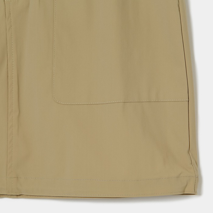 抜群のキックバック性を持つナイロントリコット素材のカーゴ風スカートです。サラリとしたナイロンの接触冷感性と透湿性が、病みつきになるほどの快適な履き心地を実現。さらに防しわ性も備えています。裾のドローストリングディテールでギャザーを寄せるとカジュアル感がアップします。シャープな素材感とカジュアルなデザインの融合がモダンで新鮮なアイテムです。