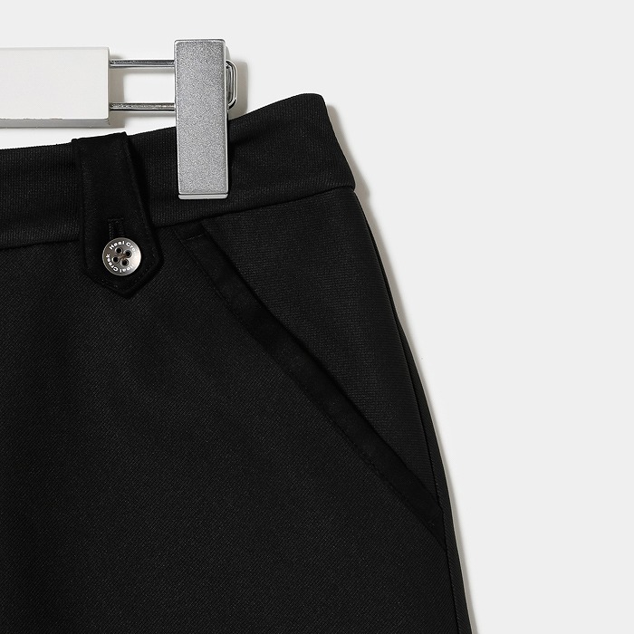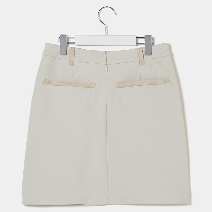 しなやかな伸縮性とお手入れの簡単さが魅力の中肉厚ピケ素材を使用したスカート。リサイクルヤーンで作られており、環境にも配慮した素材です。ピケの畝を縦横斜めに切り替えて、シンプルな台形スカートにアクセントを加えています。また、フェイクスエードのトリミングが施され、トラッド感もプラスされています。少し長めのスカート丈がカジュアルながらも落ち着いた印象を与えています。