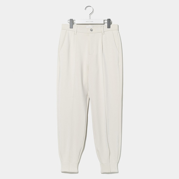 機能性に定評のあるレクチュールという糸を使用したダンボールニット素材。カジュアル過ぎず、ゴルフ場でも臆せず穿けるジョガーパンツを目指しました。ハリがあり落ち感も良い素材なので、脚のラインを拾わず、さらに前後のピンタックが縦のラインを強調して脚長効果を演出します。ストレッチ性も抜群です。