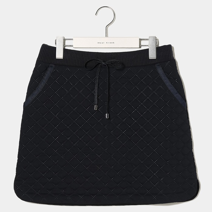 綿タッチのジャージィをミシンを使わず熱融着により中綿や裏地と一体化させています。ミシンキルトと違い糸のほつれや針穴もないため、風を通しにくく保温性が高まる加工法です。ウエストのリブや、メタリックなコードの附属使いがキレイめなカジュアル感に。単品ボトムスとしてはもちろん、同素材の半袖ブルゾンとセットアップでエレガントな雰囲気の着こなしもおすすめです。