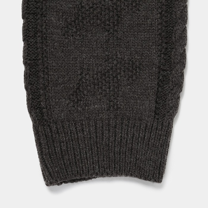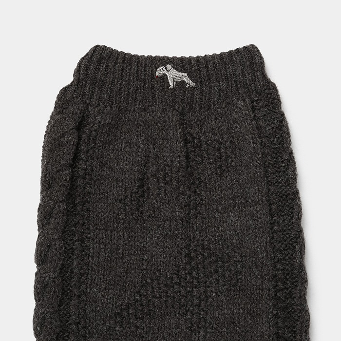 冬のスカートを寒さで敬遠される方にぜひおすすめしたい、オーバーニーのレッグウォーマーです。編み込み柄でアイコンのヘンリーがデザインされています。ひざ周りをしっかりカバーすることで体感が断然変わります。ニットなので伸縮性があり、軽くて動きやすいだけでなく、脚をまっすぐ、ひざ下を長く見せる効果もあります。
